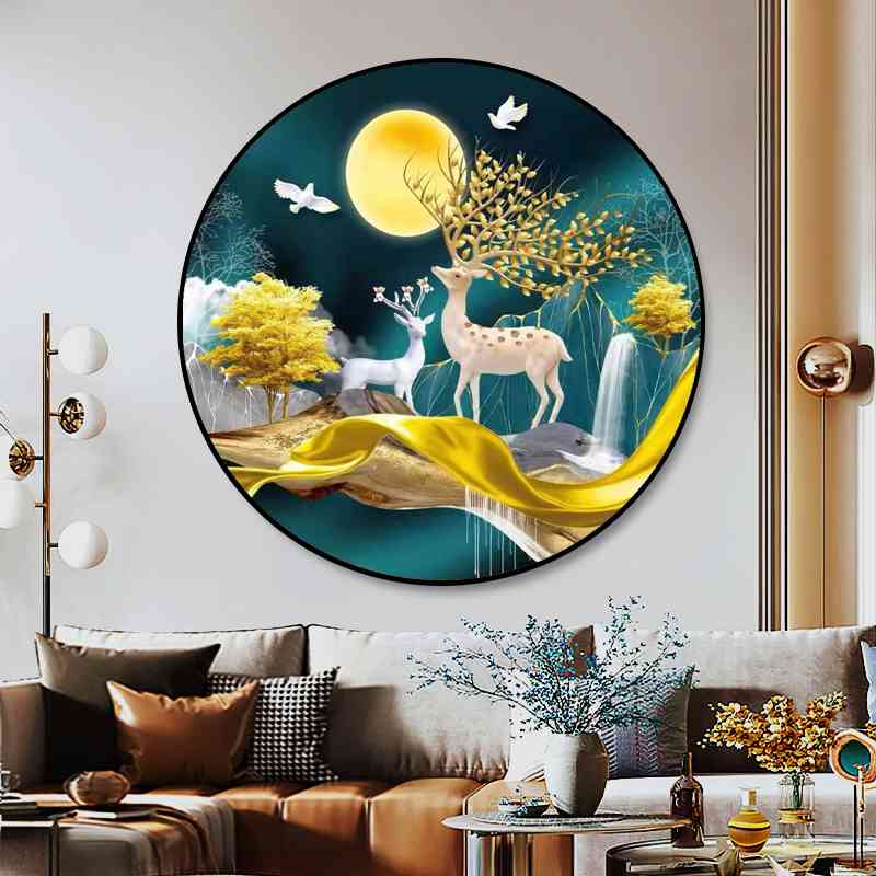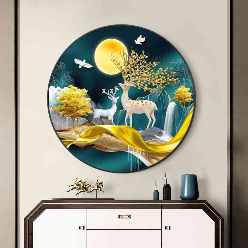 贴钻十字绣2025新款圆形发财麋鹿客厅简约招财钻石画满钻小幅风景
