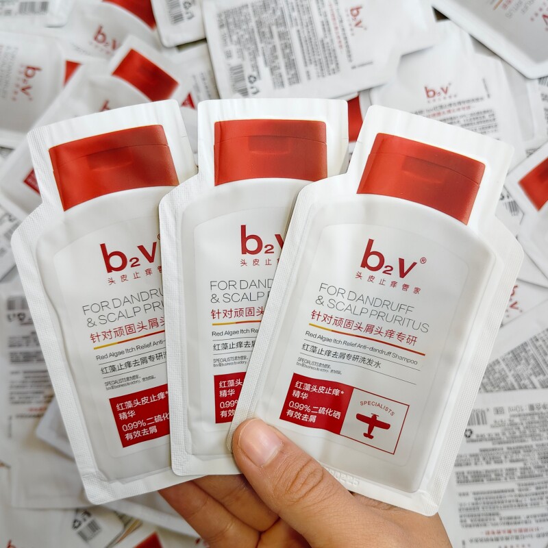 b2v红藻舒缓控油专研洗发水10ml头油袋装一次性旅行试用装小袋包