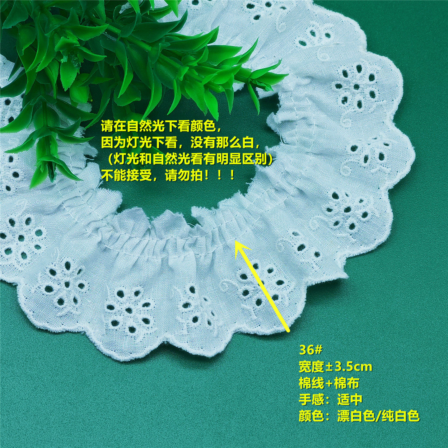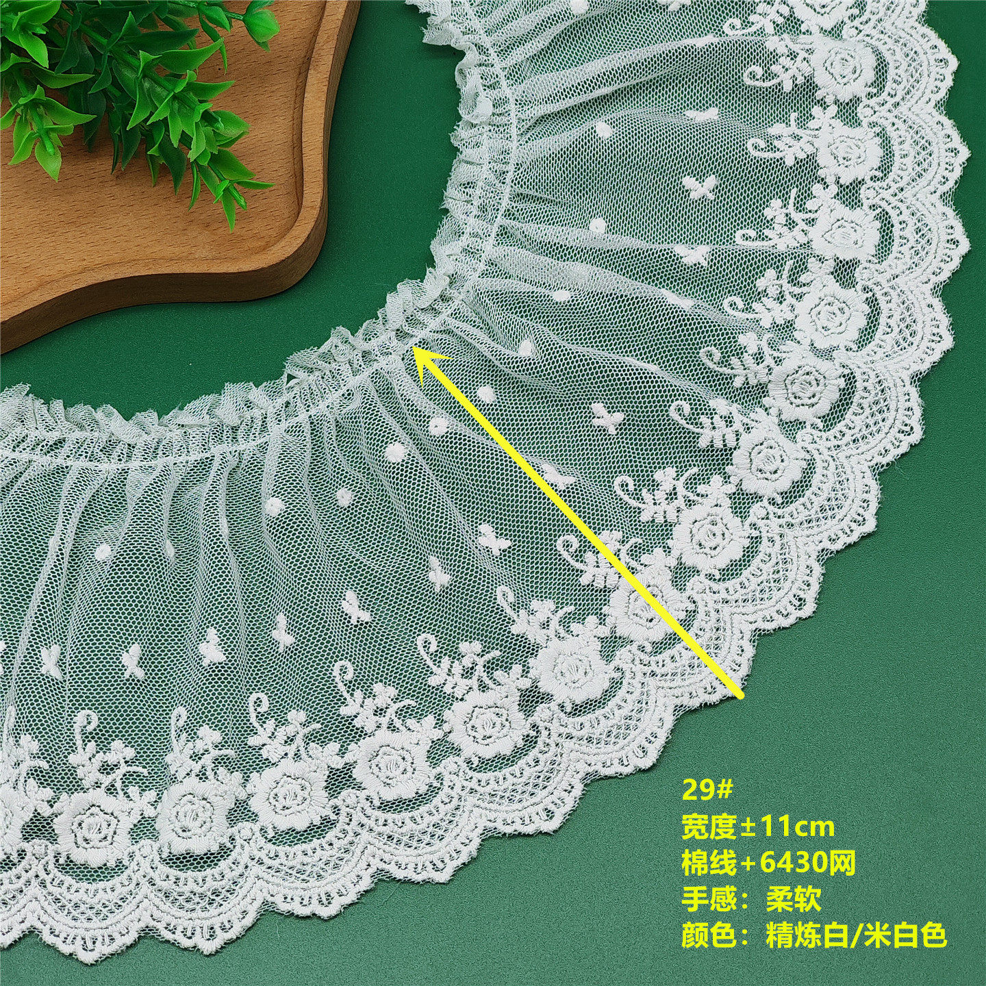 11cm宽米杏粉黑纯棉褶邹蕾丝花边
