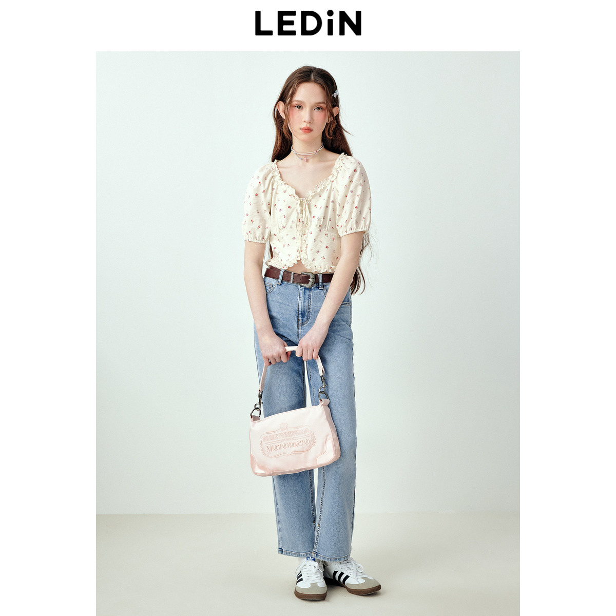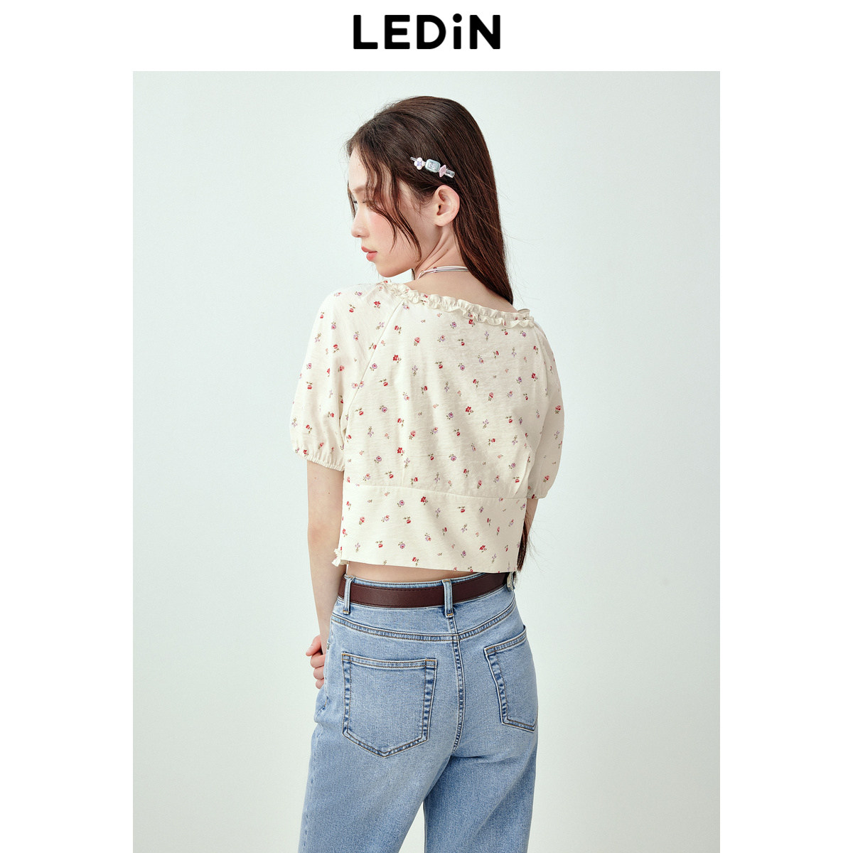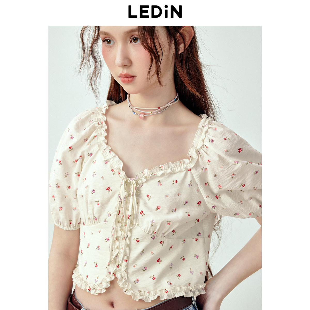 乐町甜美浪漫感碎花雪纺衫女2024夏季新款绑带设计感修身精致上衣