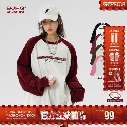BJHG美式纯棉长袖T恤卫衣打底衫