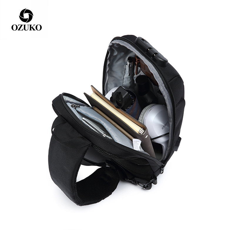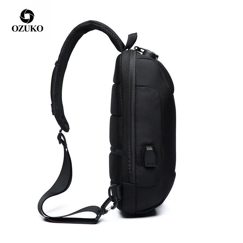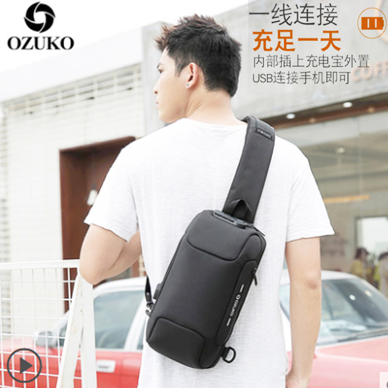 ozuko新款男士包休闲单肩包 韩版斜跨包防水牛津布潮包胸前斜背包