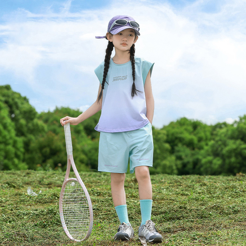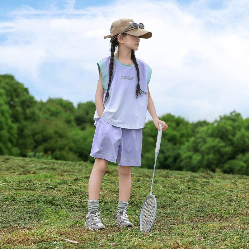 女童亲子速干运动背心套装夏季新款洋气轻薄透气中大童短裤两件套