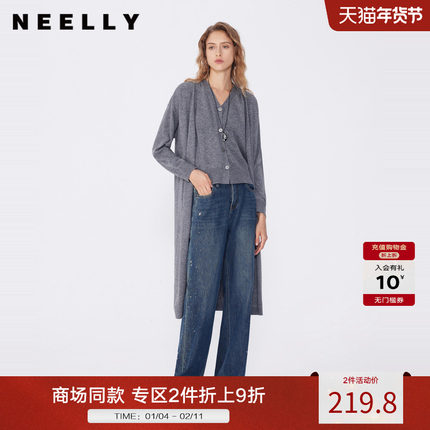 NEELLY纳俪春秋新款商场同款绵羊毛混纺灰色针织衫两件套女毛衣