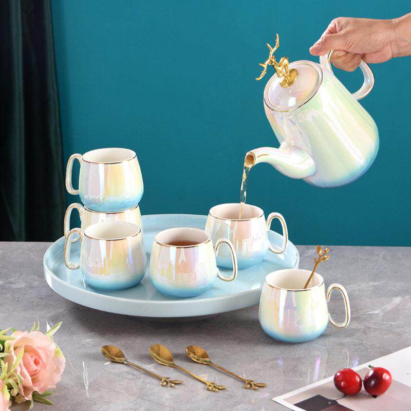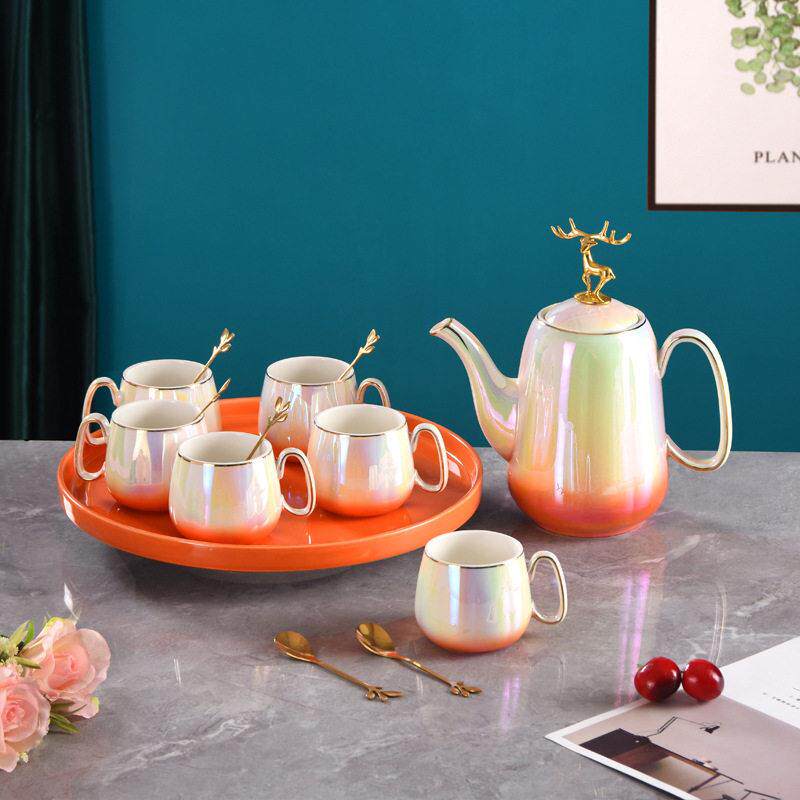 360度旋转渐层水具套装家用客厅陶瓷杯具欧式下午茶水杯水壶