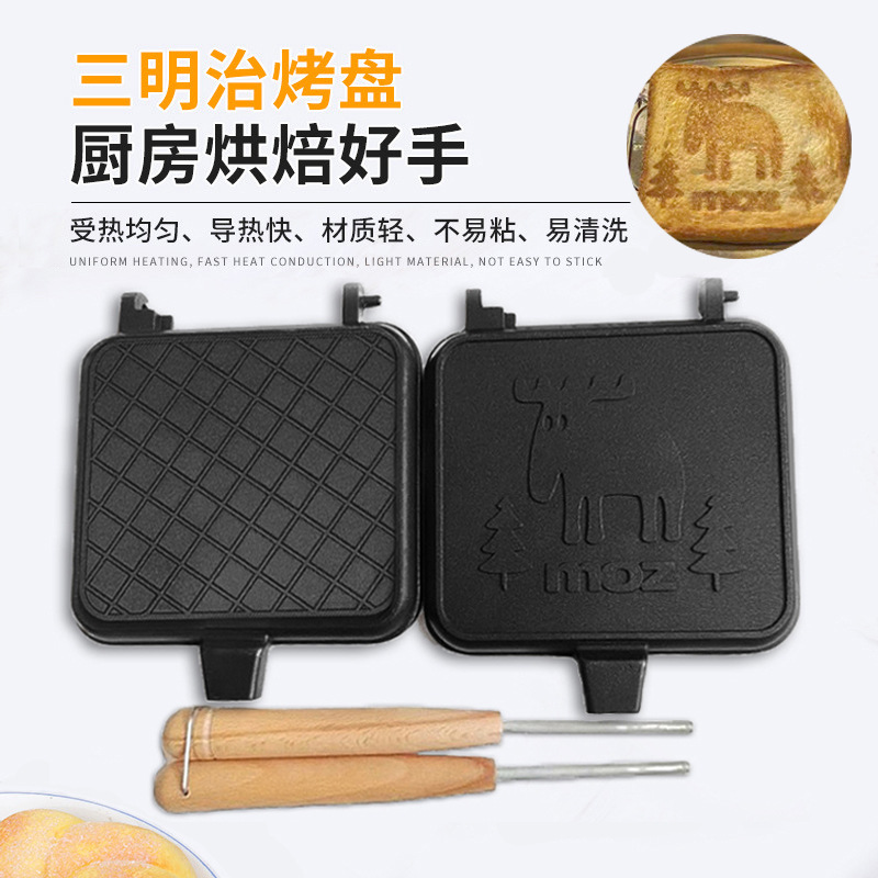 热卖麋鹿三明治面包烤盘不粘吐司模具户外露营煎盘牛排锅早餐锅