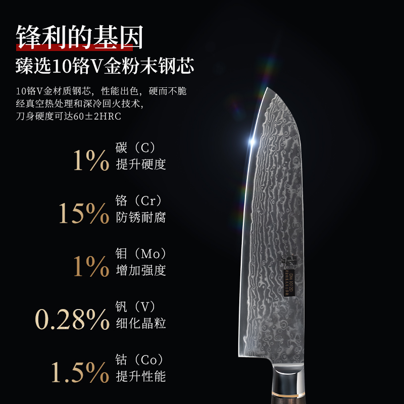 邓家刀大马士革菜刀粉末钢芯vg10铬钢切片刀家用高端大足龙水刀具
