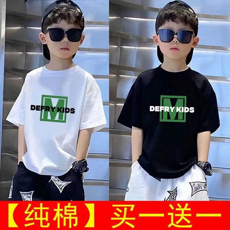 男童纯棉短袖t恤2024夏季新款儿童打底中大童宽松帅气半袖上衣潮