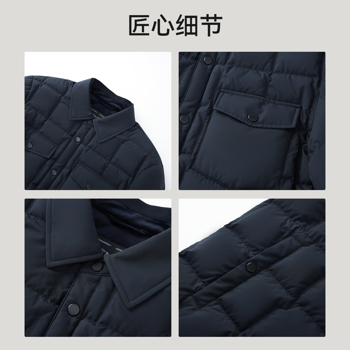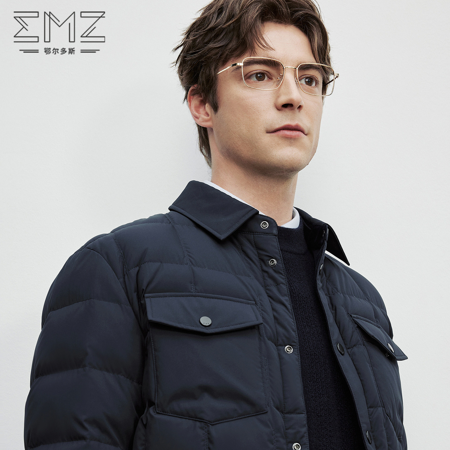EMZ鄂尔多斯25冬季新款多口袋保暖白鸭绒翻领短款休闲羽绒服男士