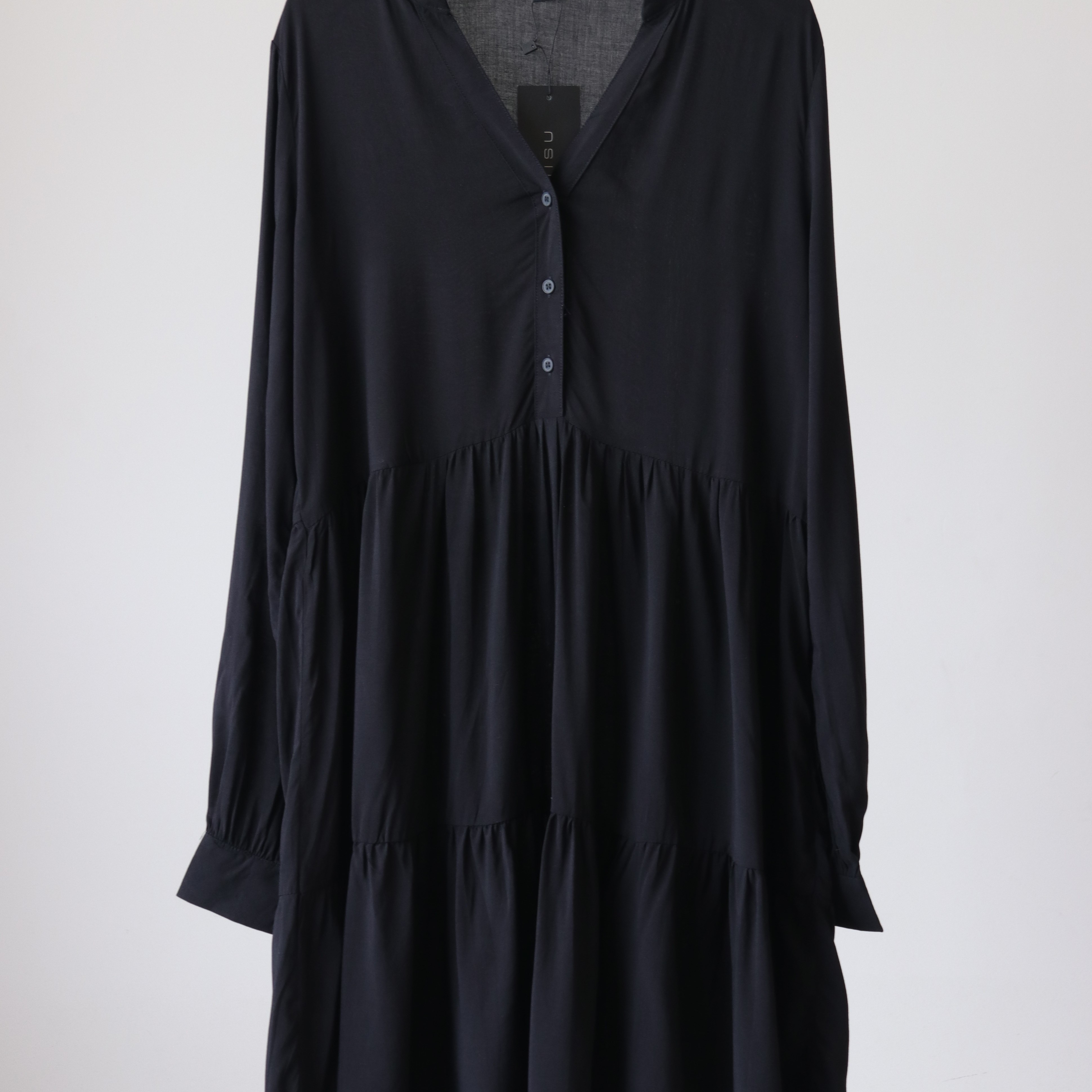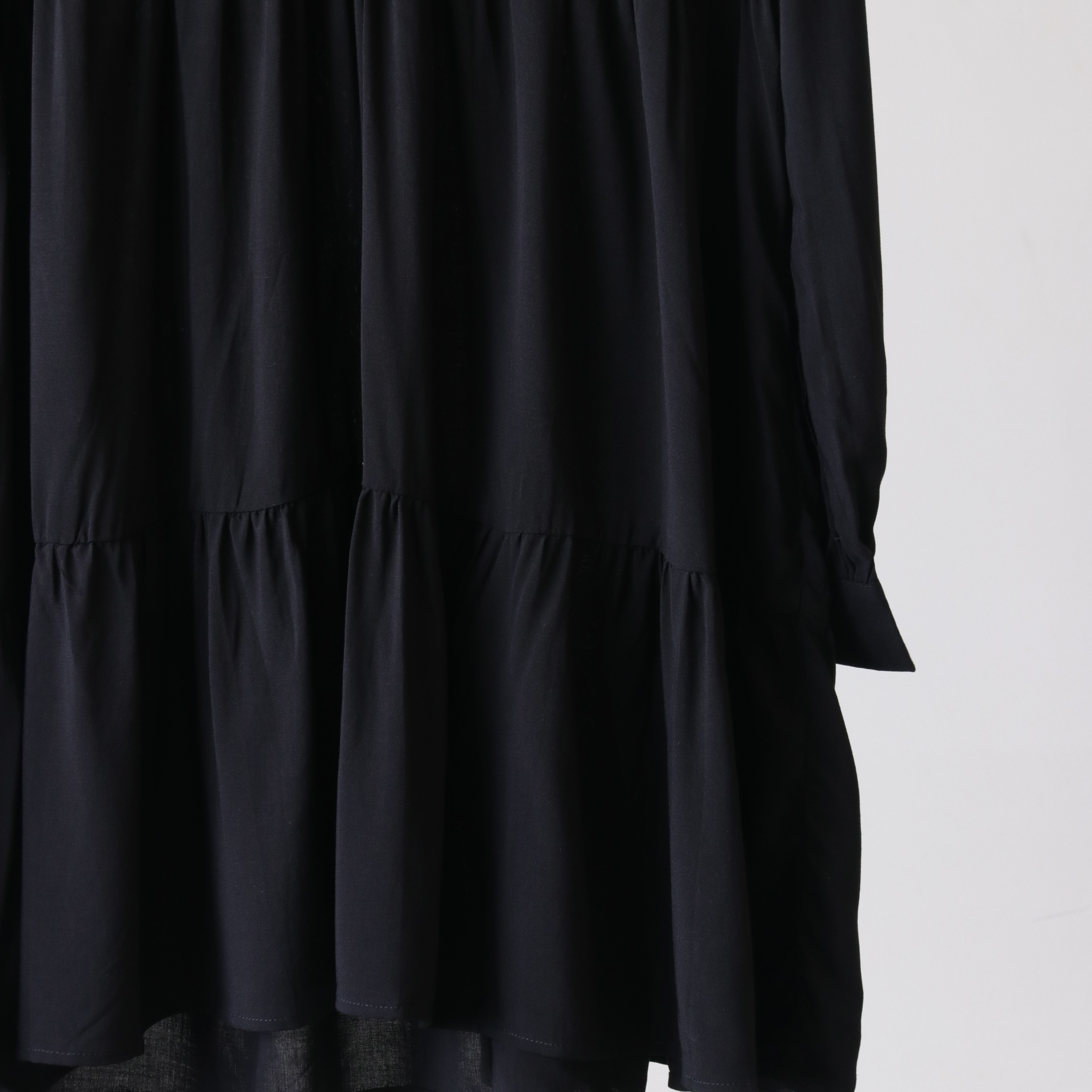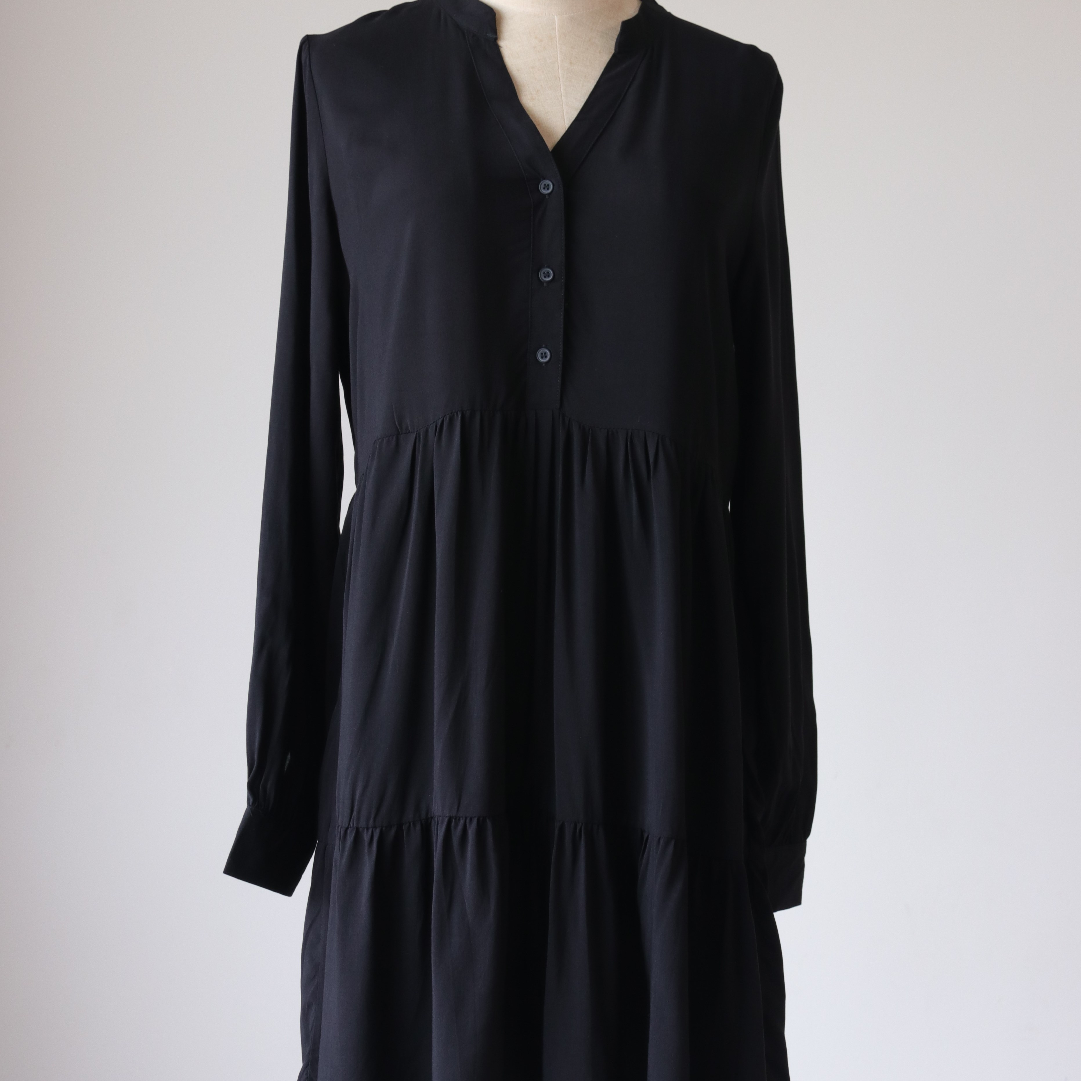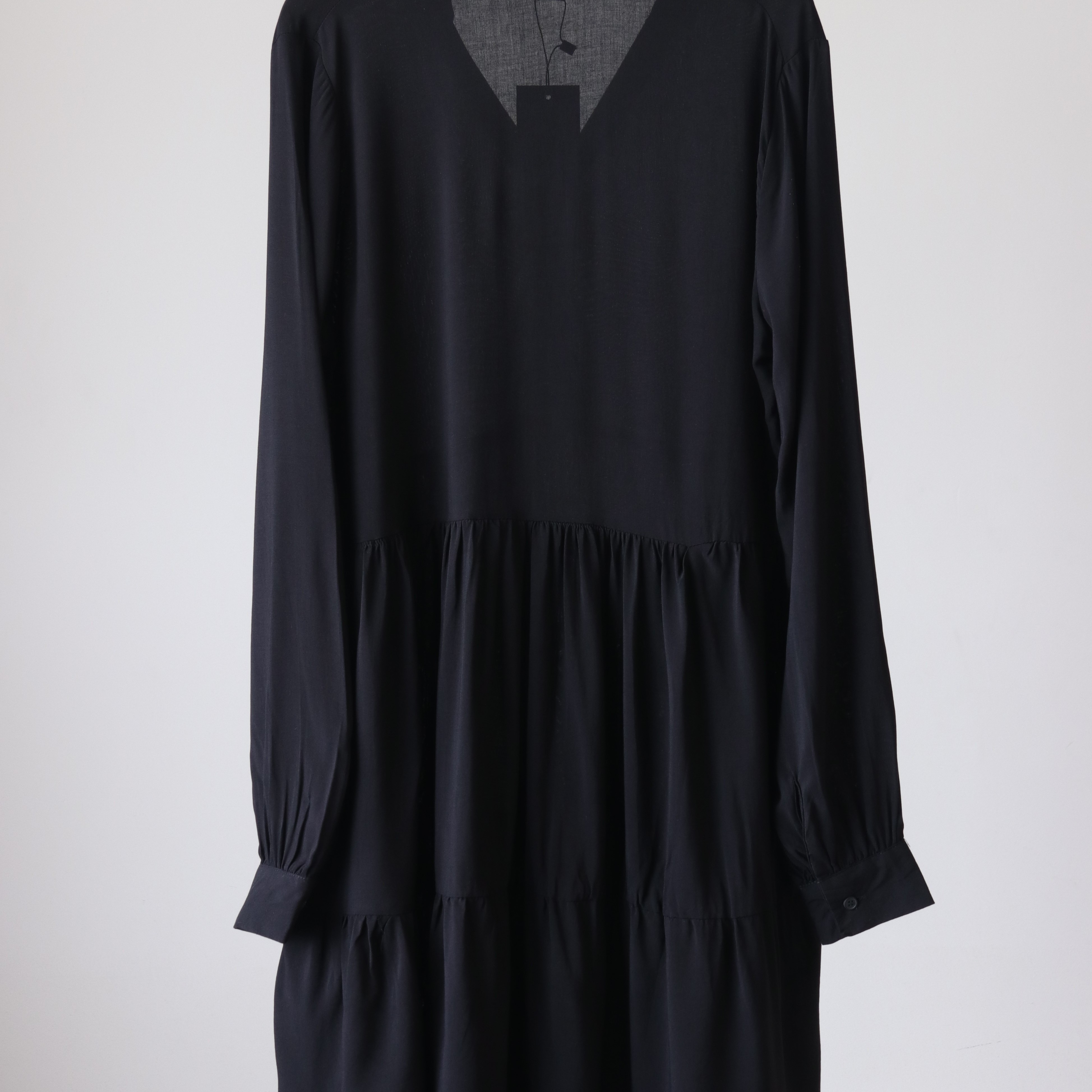 2025年春夏款气质休闲小黑裙春季长裙女v领长袖复古显瘦连衣裙