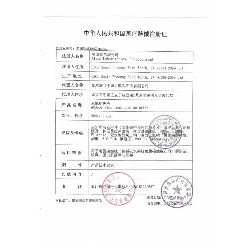 爱尔康蓝澈双氧水RGP硬性隐形眼镜角膜塑形除蛋白OK镜护理液