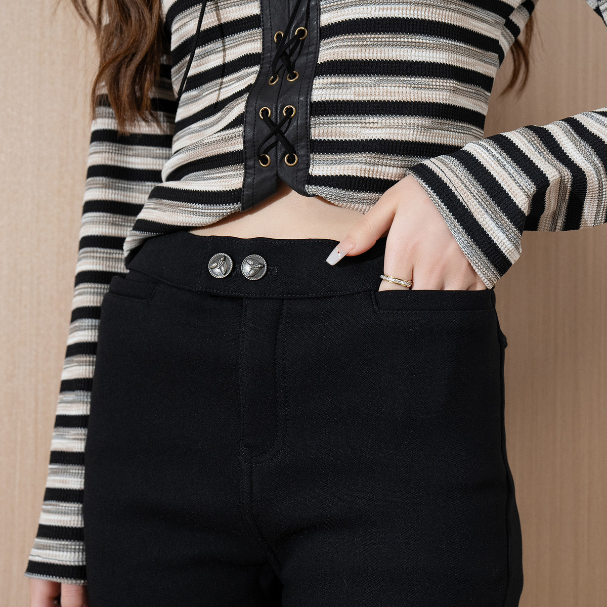 唐狮打底裤女外穿春秋黑色裤子高腰小黑裤铅笔小脚紧身魔术裤ddk