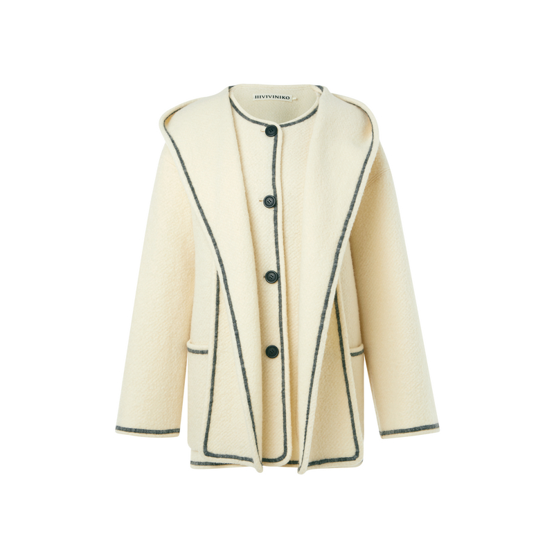 IIIVIVINIKO冬新款连帽围巾缩绒羊毛呢大衣外套女R449012323C