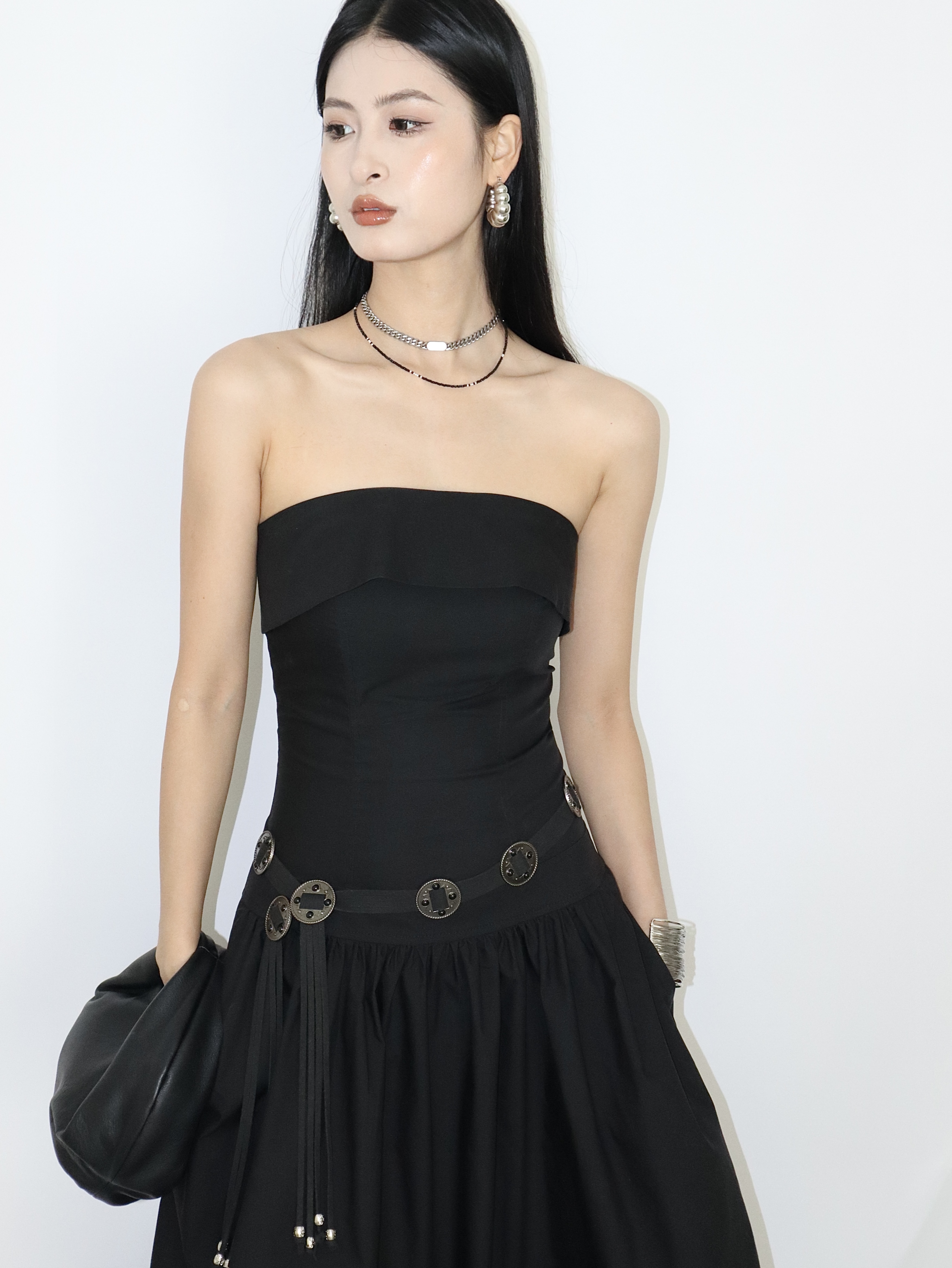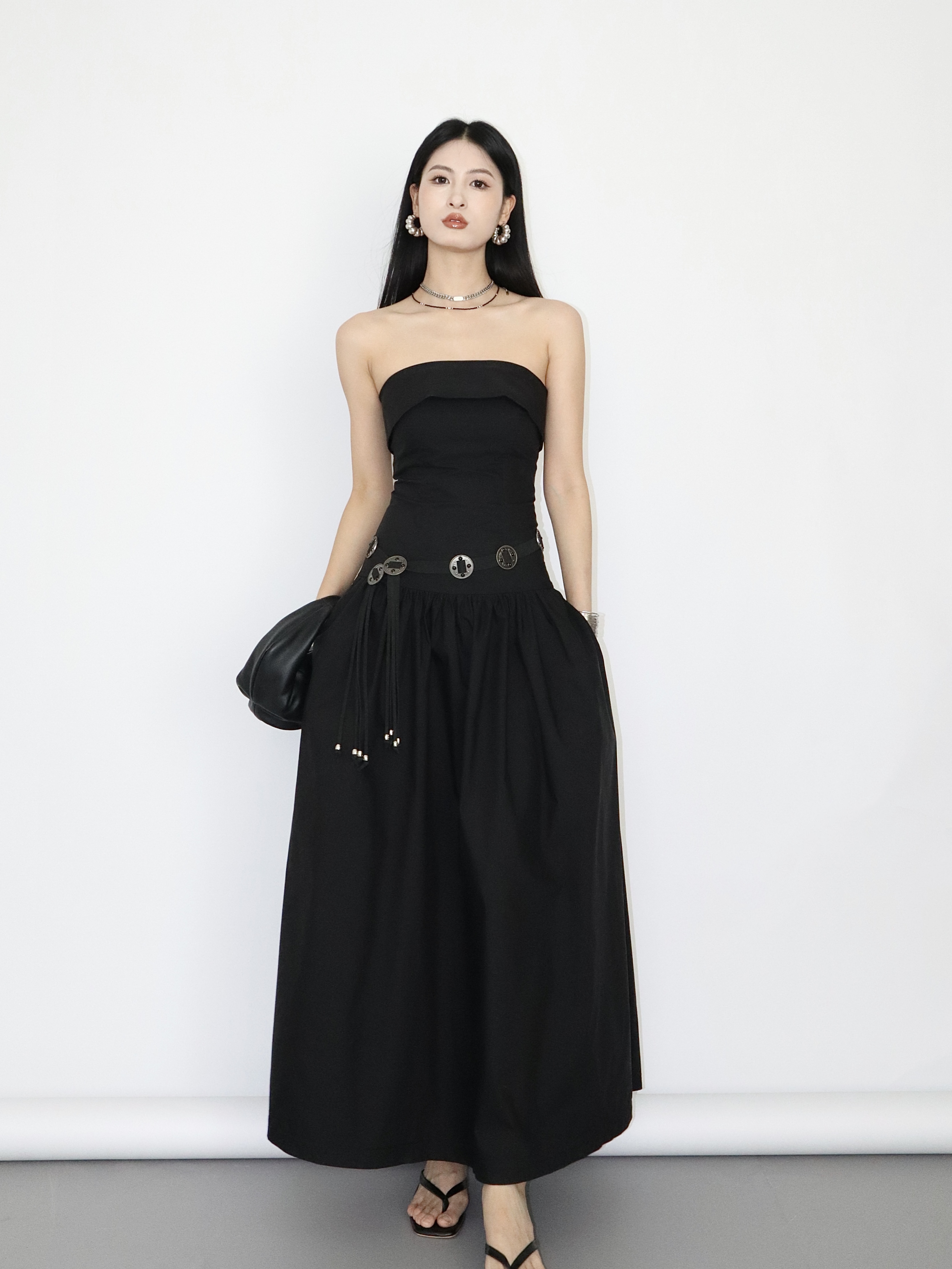 SHIMANINE 岛九 立裁设计感低腰休闲 气质收腰显瘦抹胸连衣裙女夏