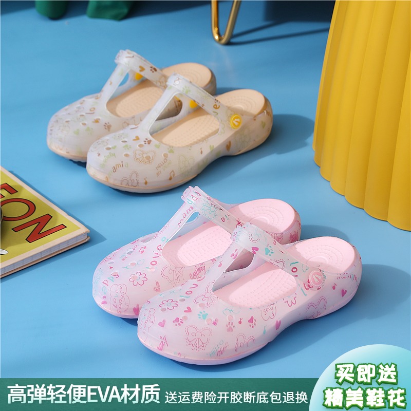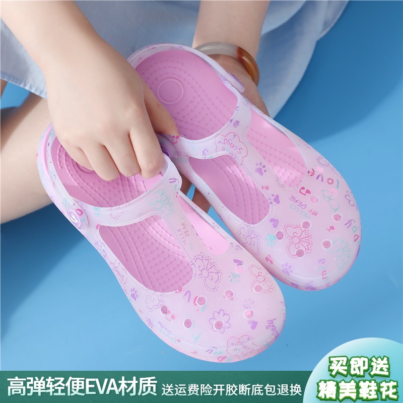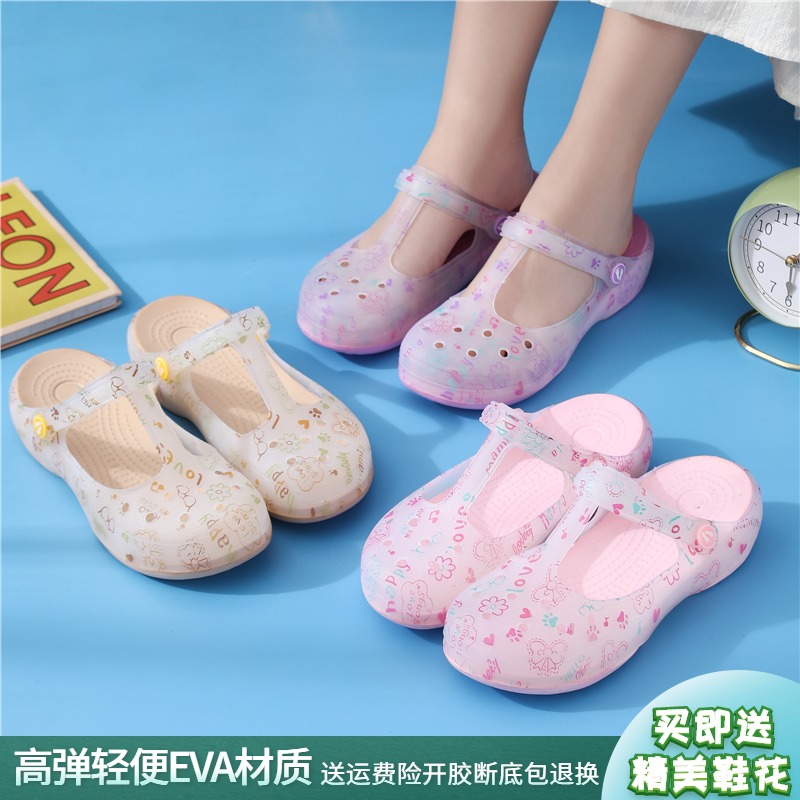 印花洞洞鞋女夏季沙滩鞋防滑果冻凉鞋软底坡跟包头护士拖鞋外穿