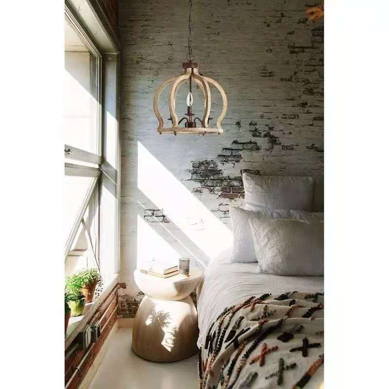 创意美式乡村实木做旧吊灯北欧卧室饭厅客厅书房民宿酒店复古灯具
