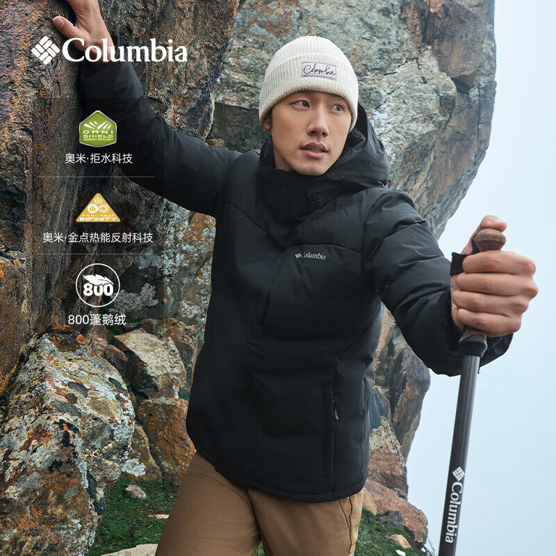 Columbia哥伦比亚鹅绒羽绒服男2025冬季热能保暖棉羽拒水连帽外套