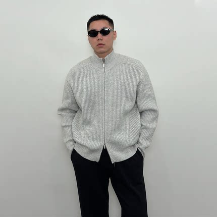 Roast lucky羊毛立领针织毛衣开衫软糯宽松百搭休闲保暖拉链外套