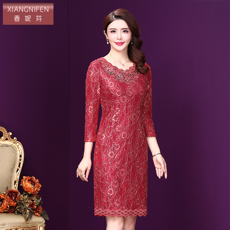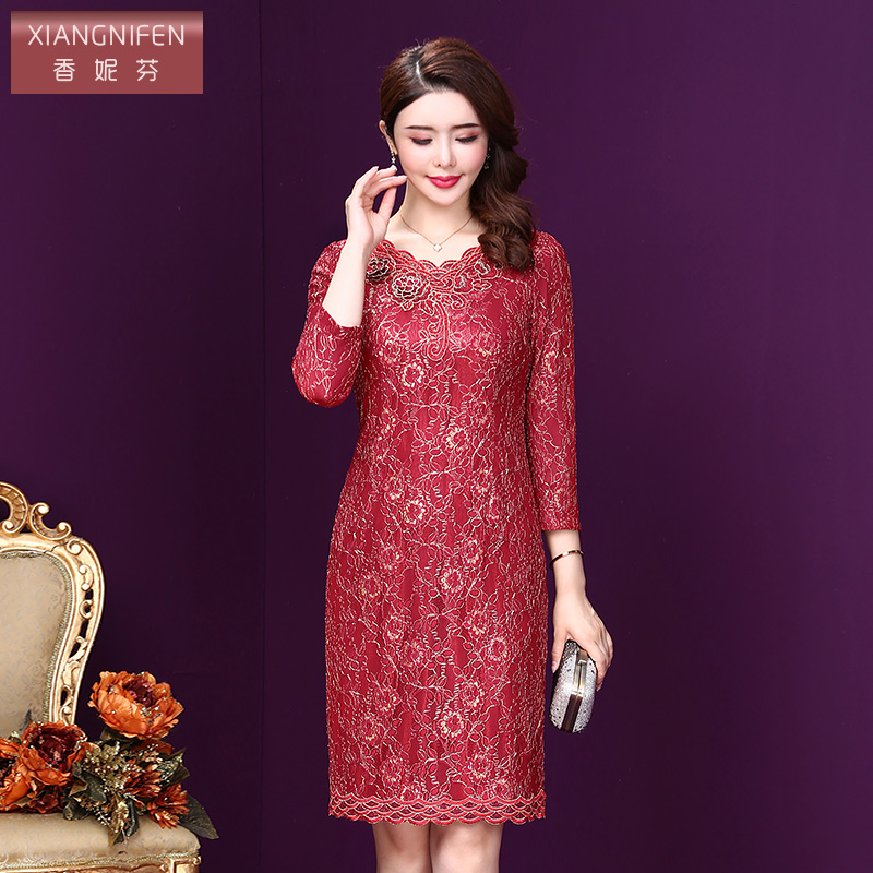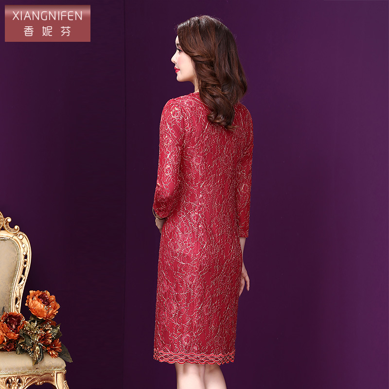 香妮芬秋季婚礼妈妈礼服2025新款婚宴装高贵洋气红色蕾丝连衣裙女