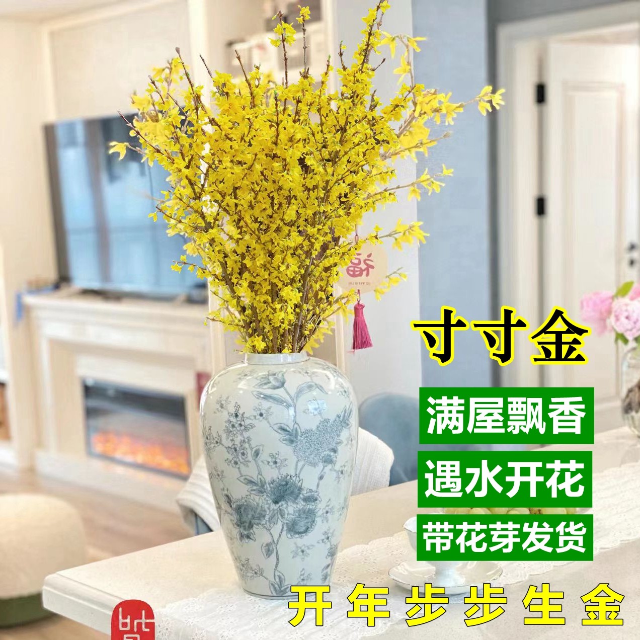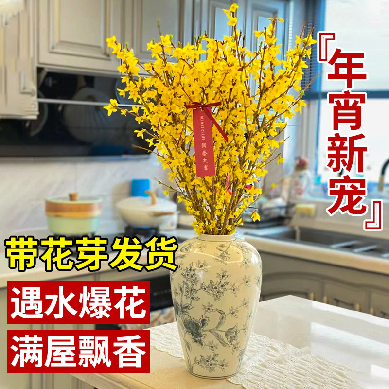 连翘干枝寸寸金鲜花盆栽水培植物鲜切花雪柳花卉室内龙柳吊钟绿植