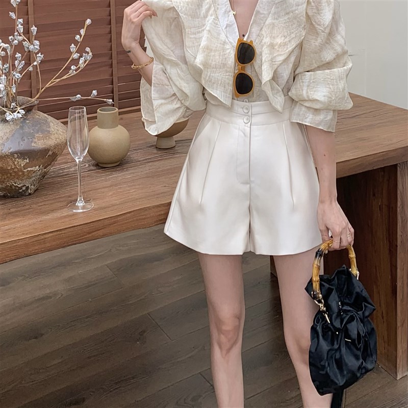 法式高级感休闲西装短裤女夏2024新款高腰宽松百搭A字阔腿裤