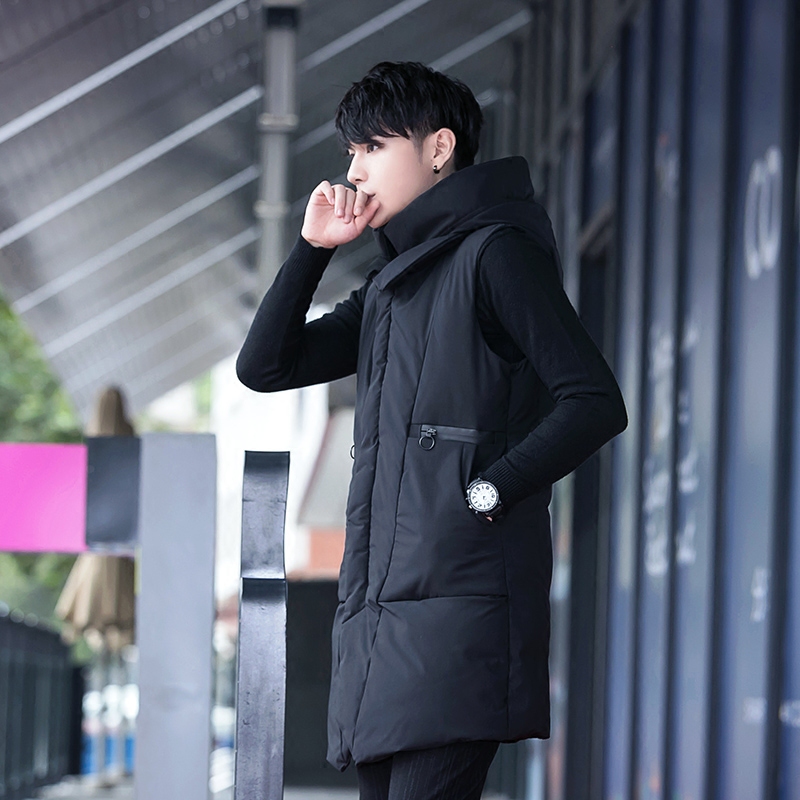 潮流男士中长款羽绒棉棉马甲韩版坎肩不可拆卸连帽韩版修身马夹厚