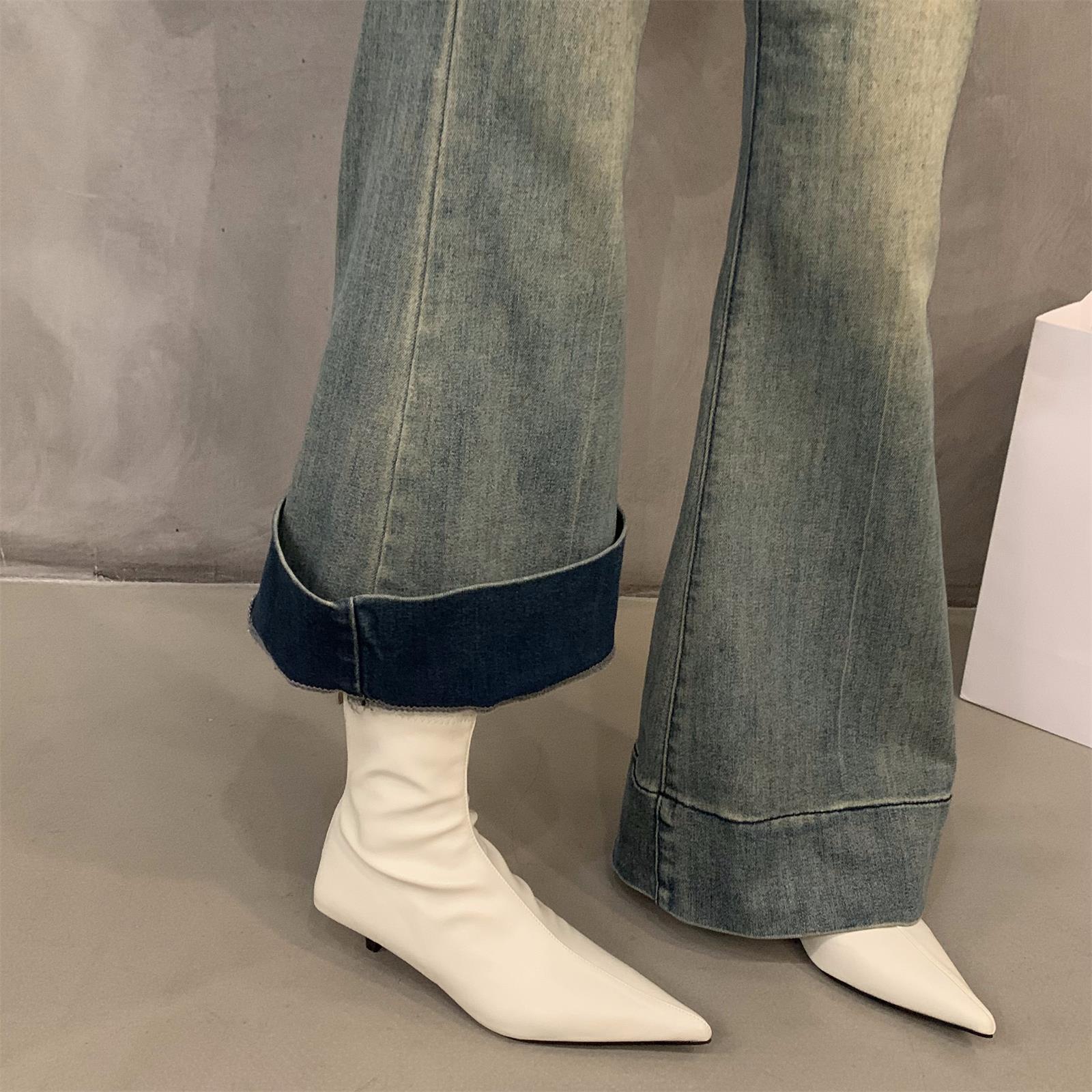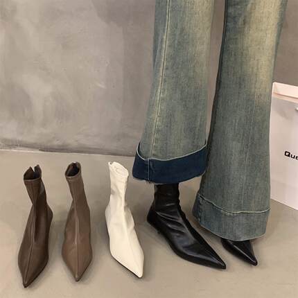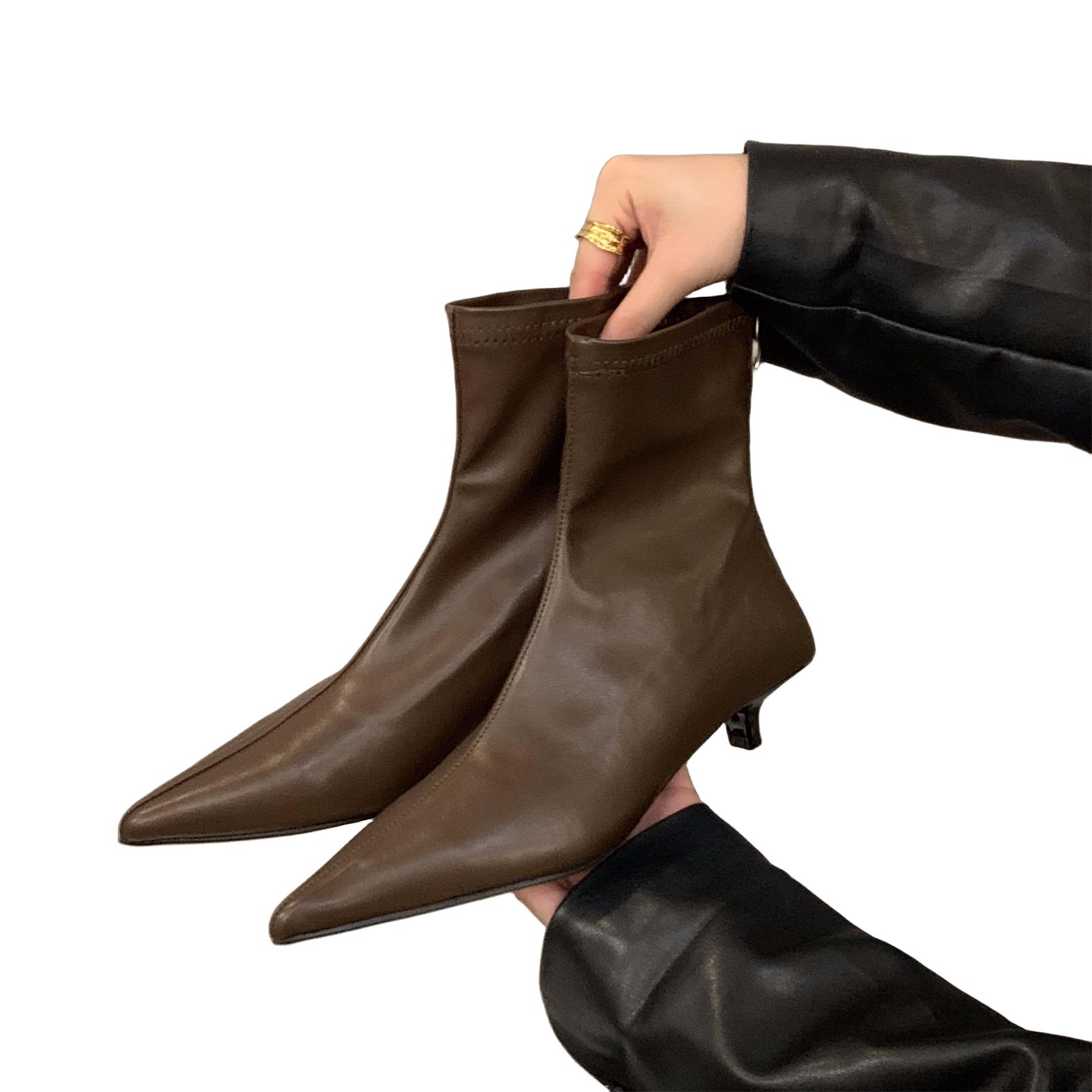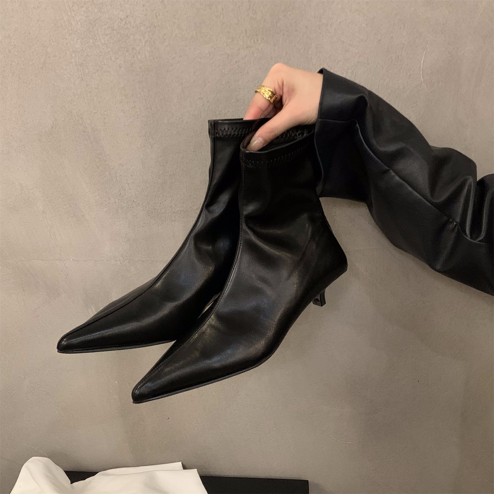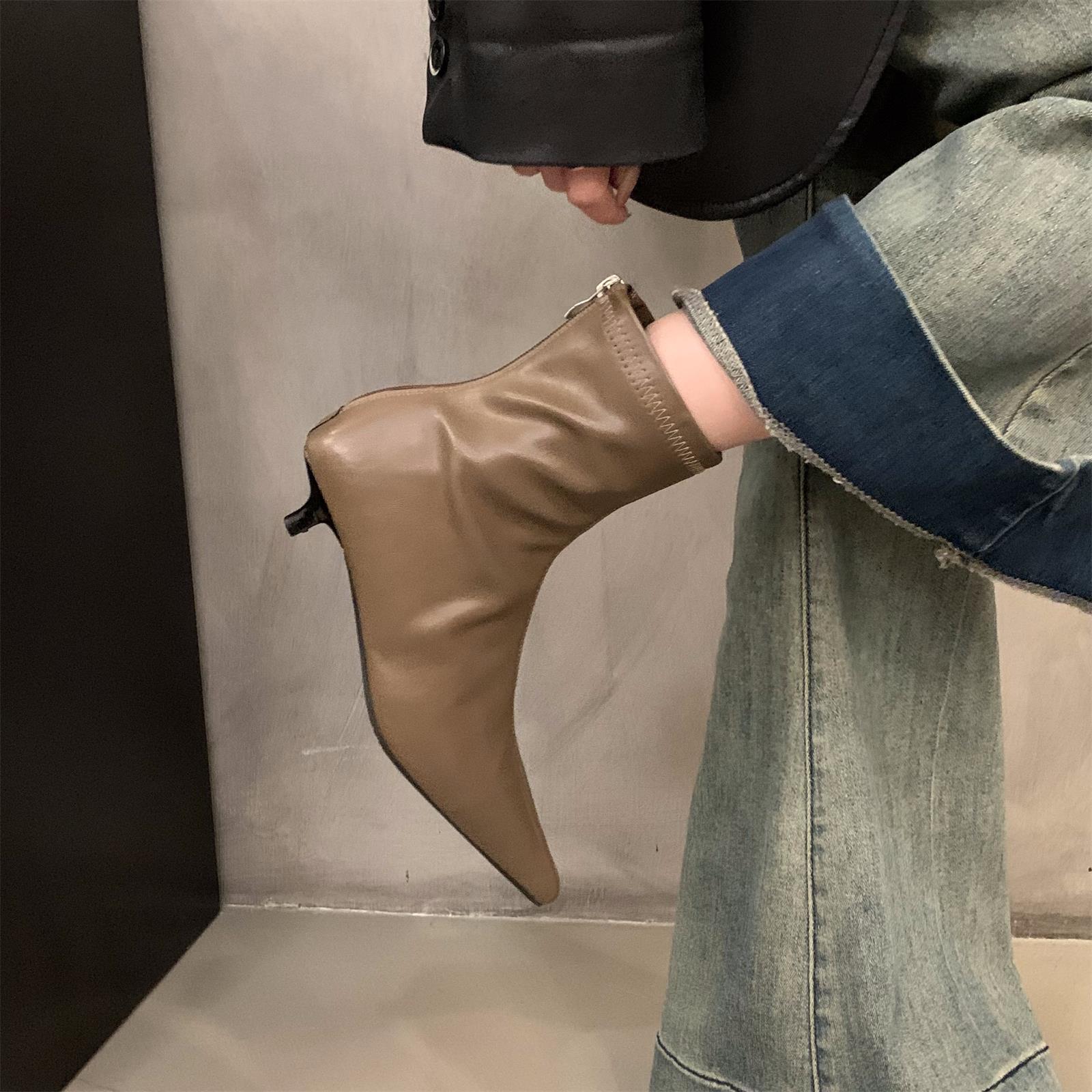 轻奢风小踝靴气质小细跟高跟靴尖头短靴女鞋2024年新款春秋瘦瘦靴