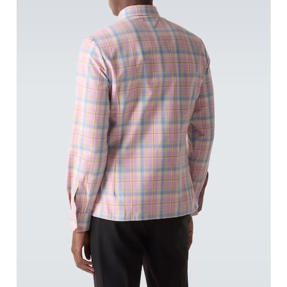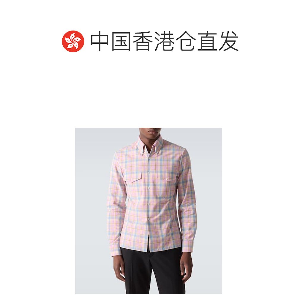 1h可退 香港直邮潮奢 Prada 普拉达 男士 格纹棉质衬衫 pink粉色