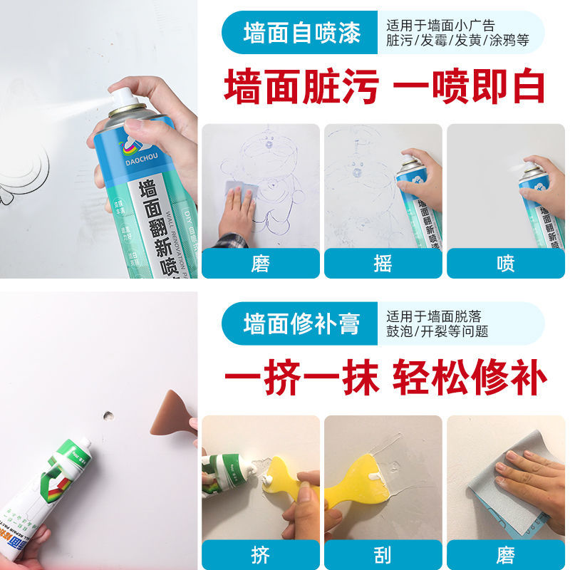 墙面自喷漆白色墙壁修复修补裂缝墙体翻新防水防潮防霉喷漆净味