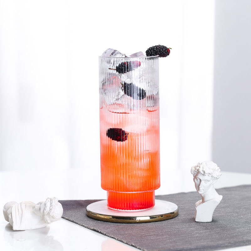 玩创酒匠简约条纹玻璃杯长饮杯柯林杯北欧ins创意条纹杯果汁杯