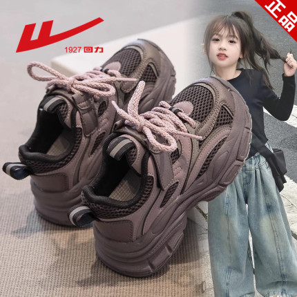 回力真皮女童鞋运动鞋网面儿童老爹鞋2025春秋新款软底透气休闲鞋