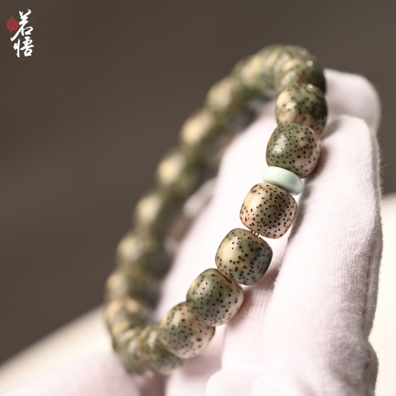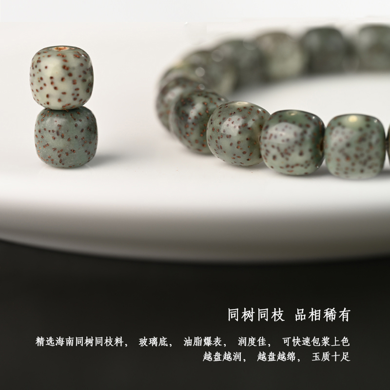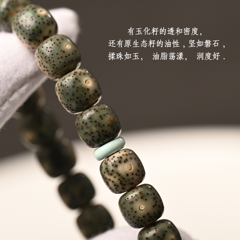 海南星月菩提手串单圈原生态石玉料阴绿皮菩提子手链绿松石隔片珠