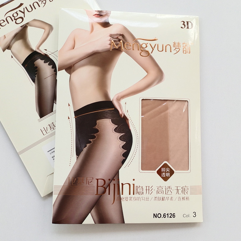 梦韵丝袜女6126春夏超薄透明比基尼无痕隐形连裤袜3D防勾丝黑肤色