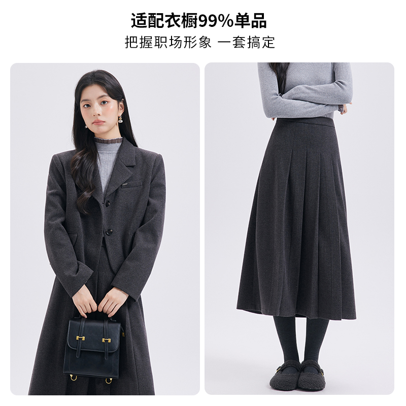 达佳诗灰色毛呢西装短外套女小个子秋冬加厚教资面试穿搭教师套装