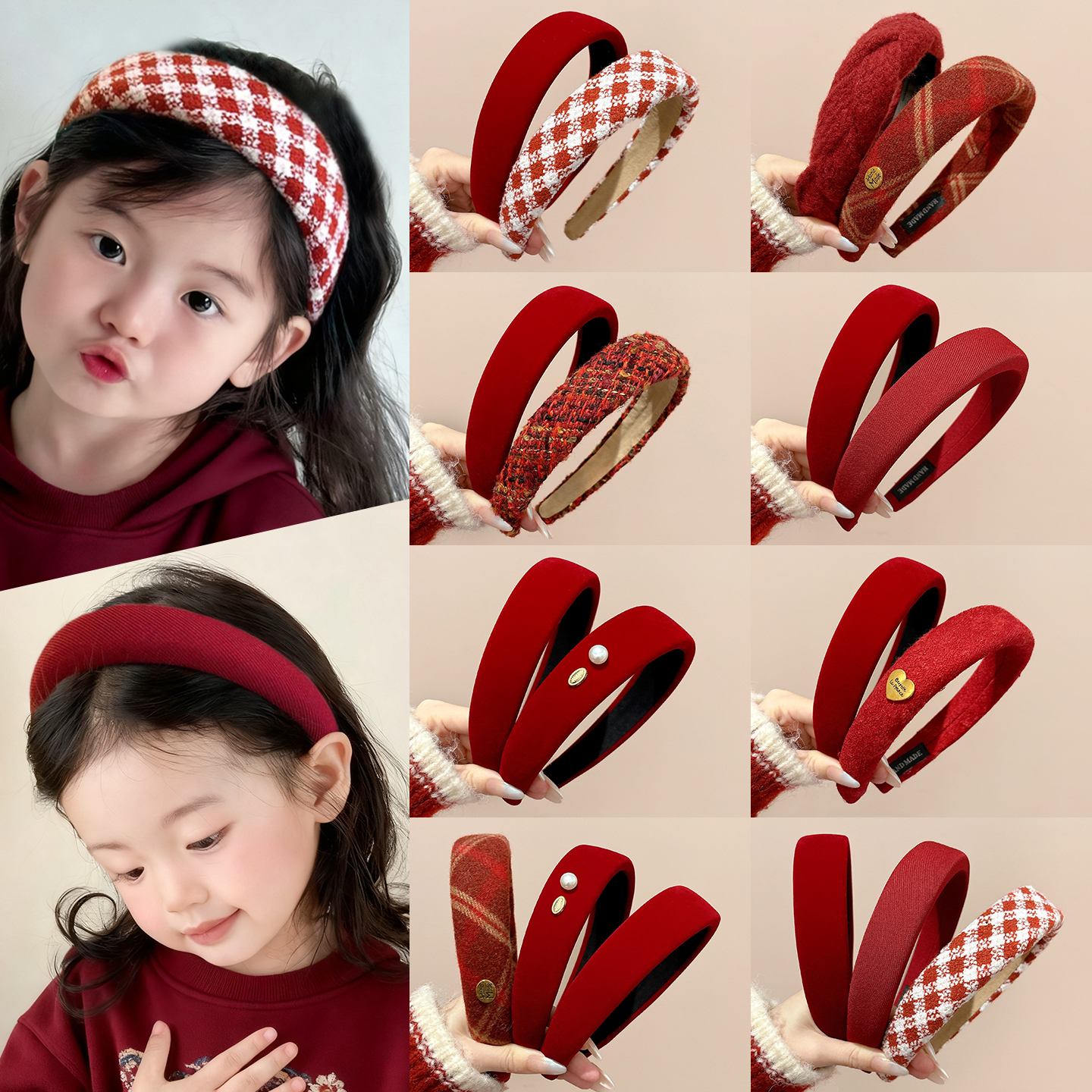 儿童秋冬安可拉红宽边发箍女童高级感日常外带发卡宝宝不勒头头箍