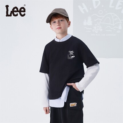 Lee Kids儿童假两件长袖T恤2025春季新款男童女童纯棉打底衫上衣