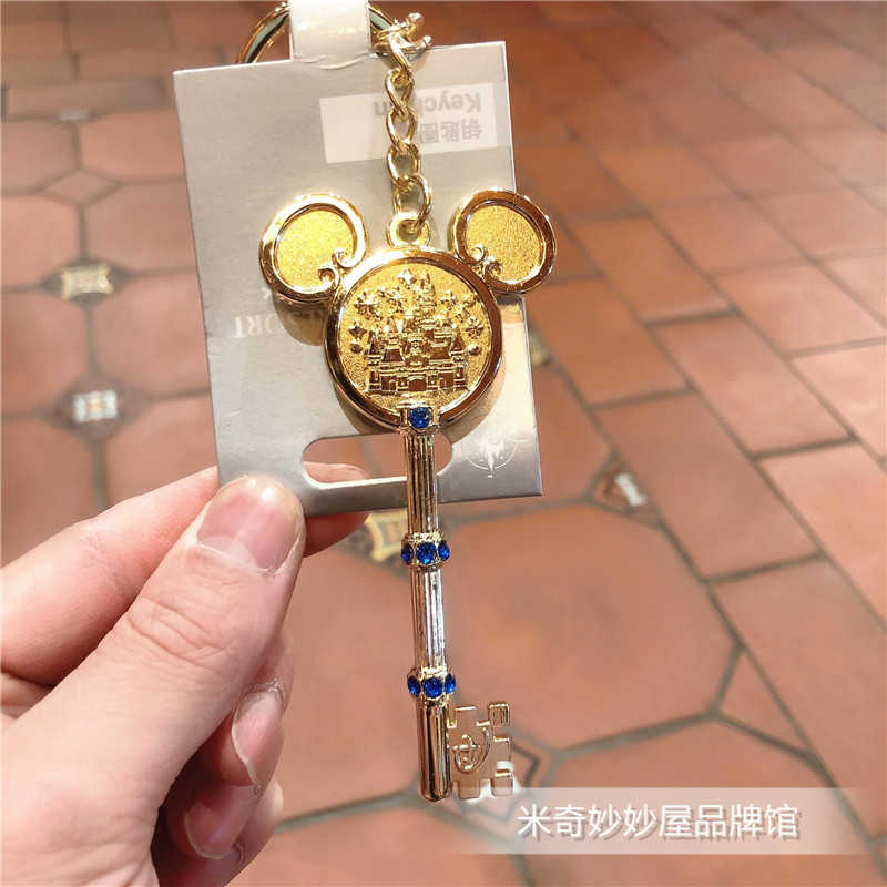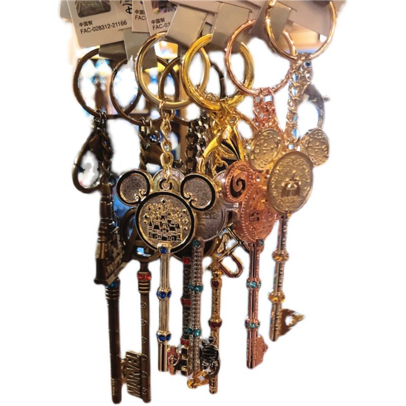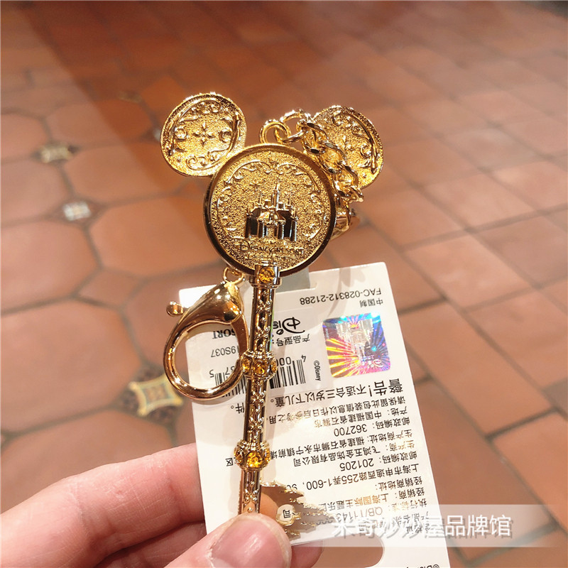 上海迪士尼国内代购米奇金色城堡钥匙扣钥匙造型圈复古车挂件金属