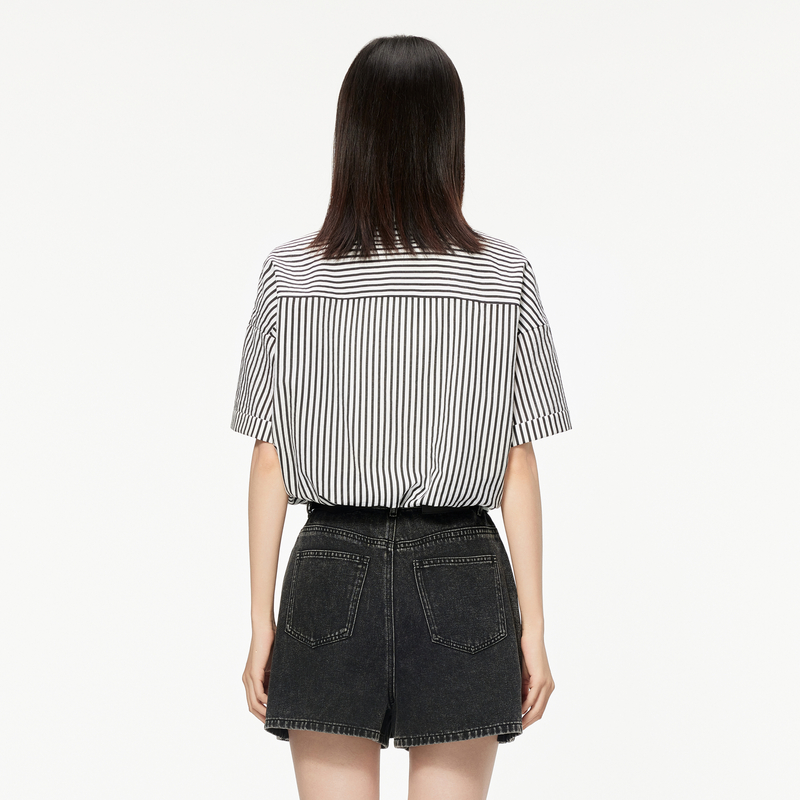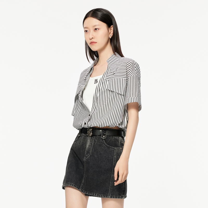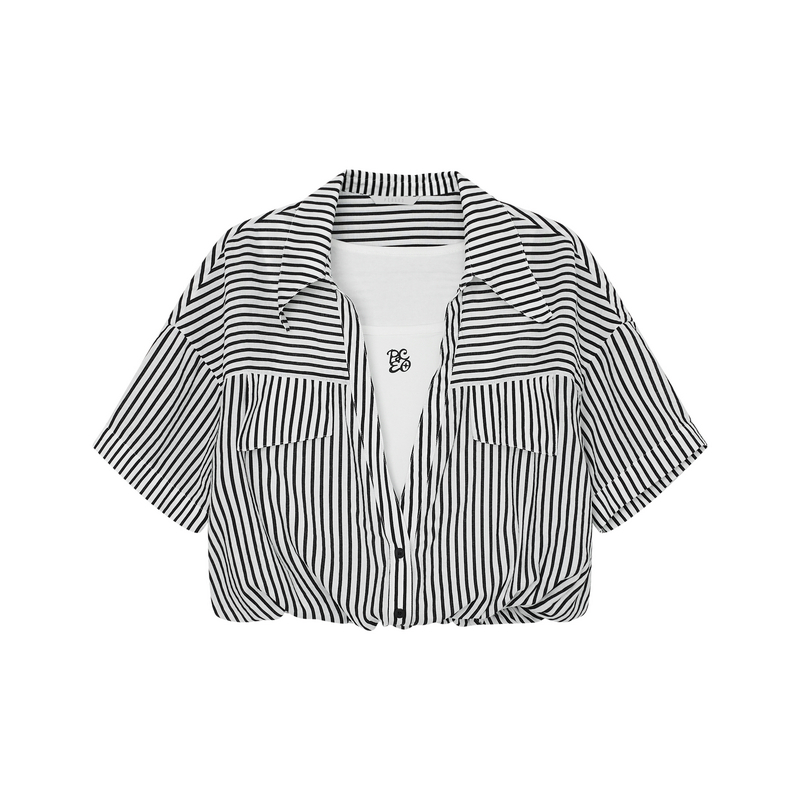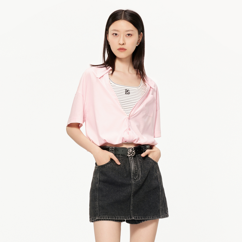 飘蕾设计感假两件短袖衬衫女夏季2025新款爆款宽松小众短款上衣