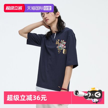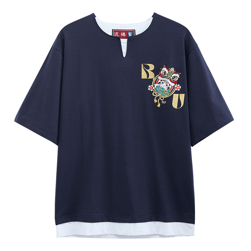 【自营】ONIARAI/鬼洗24春夏棒系列醒狮达摩假两件V领男士短袖T恤