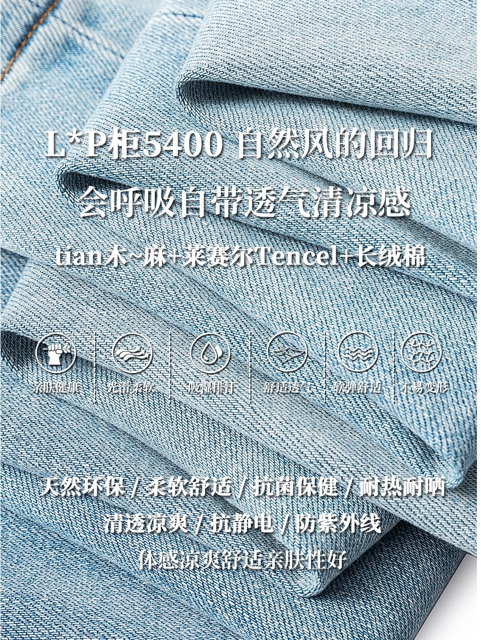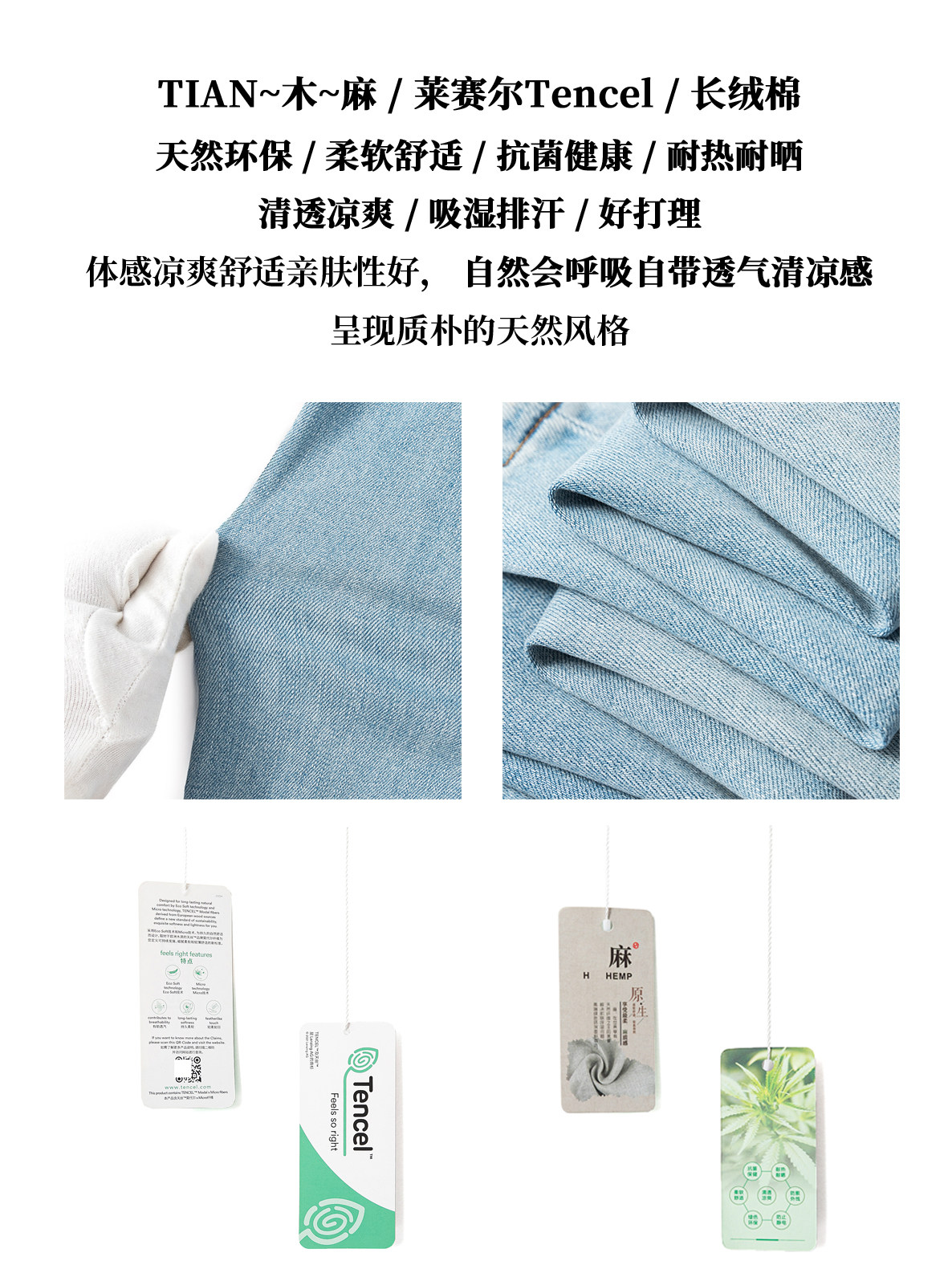 L*P惬意松弛感 天木麻2024夏季男士宽松汉麻牛仔裤亚麻牛仔长裤男
