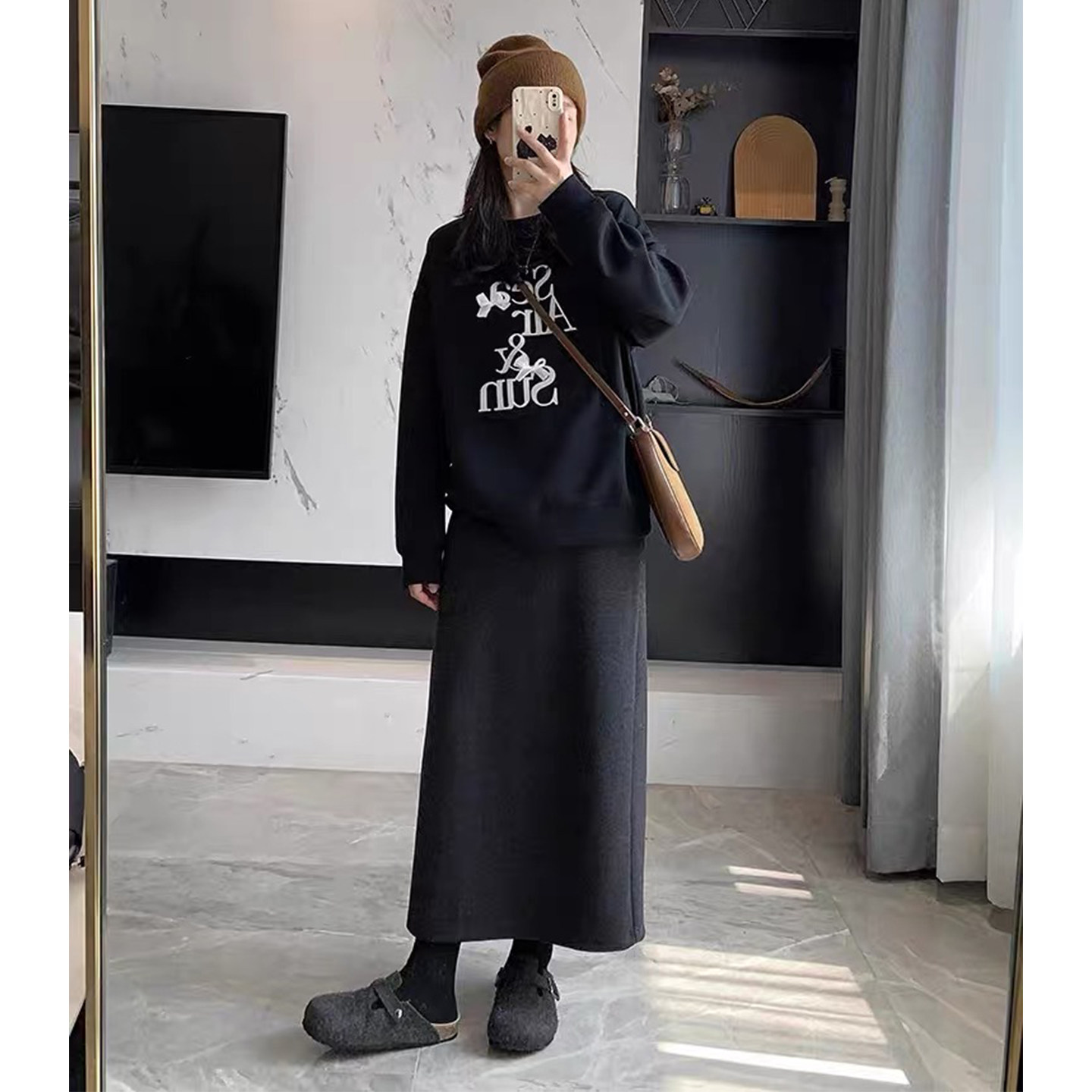 黑色醋酸羊毛呢半身裙女秋冬