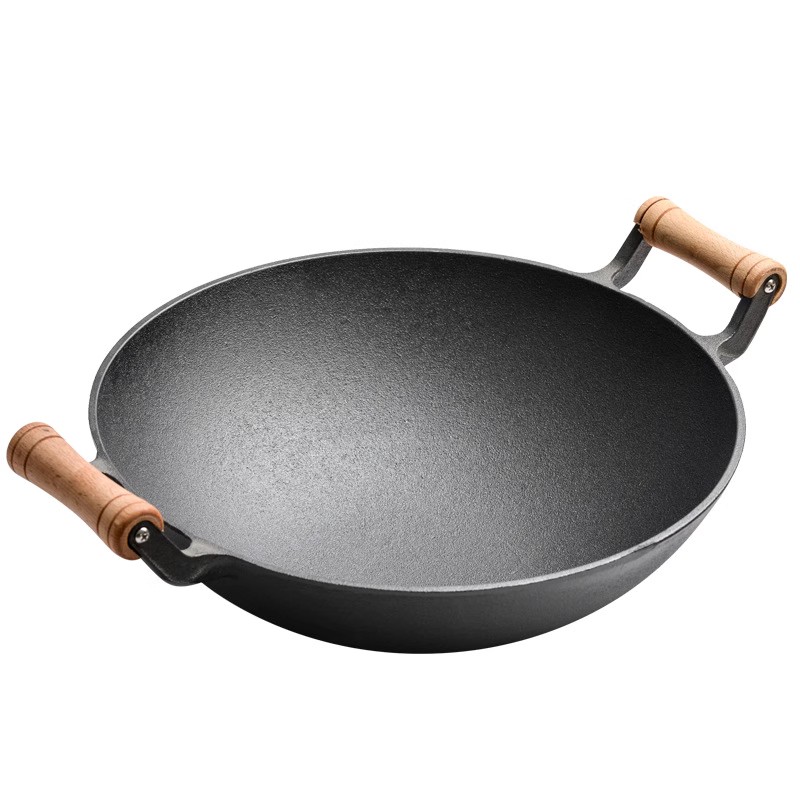 双耳铸铁炒锅老式圆底大铁锅w家用生铁锅无涂层不粘锅燃气用炒菜