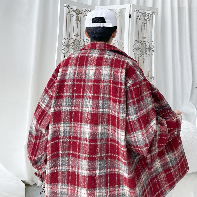 妈个鸡妈MGJM大码小香风帅气秋冬撞色格纹夹克宽松休闲男女外套潮