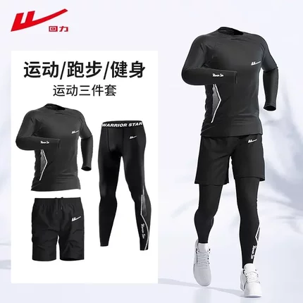 回力运动套装男健身篮球足球训练服2025春秋新款紧身速干跑步服男
