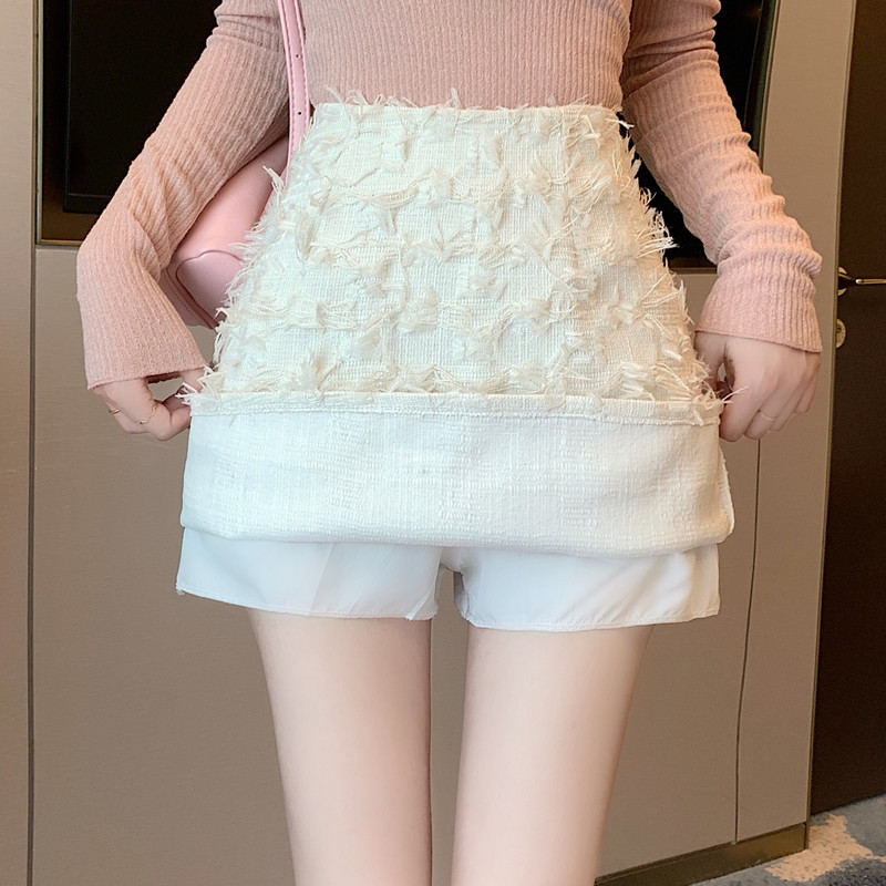 小香风粗花呢半身裙女秋冬新款高腰显瘦辣妹包臀裙粉色a字短裙子