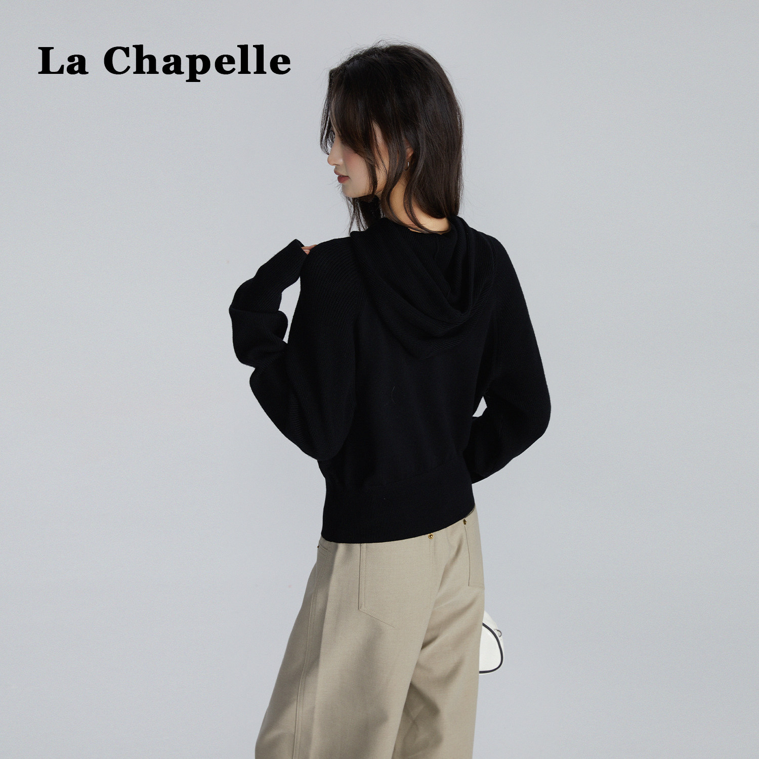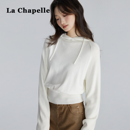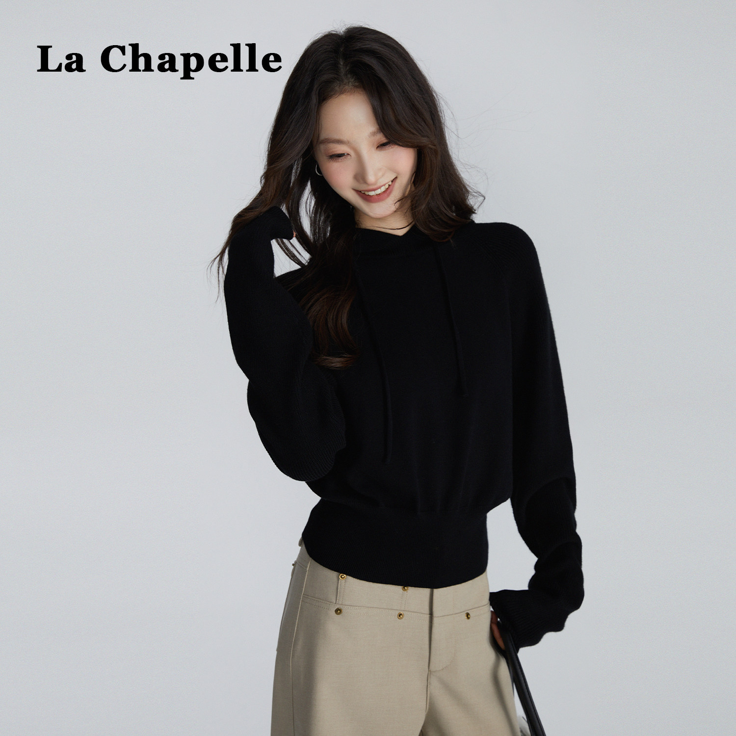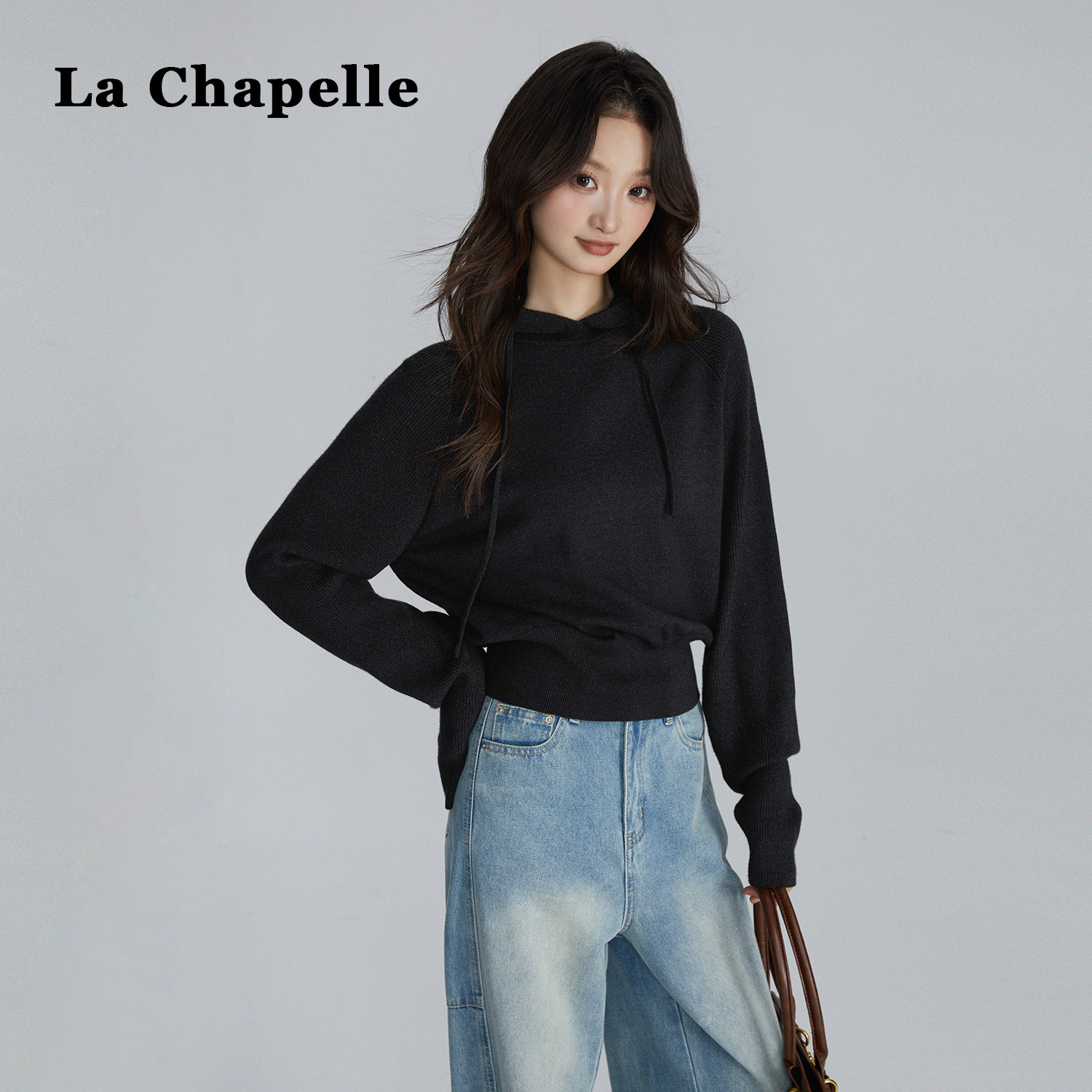 拉夏贝尔韩系慵懒松弛感套头毛衣外套女秋冬季宽松百搭连帽针织衫