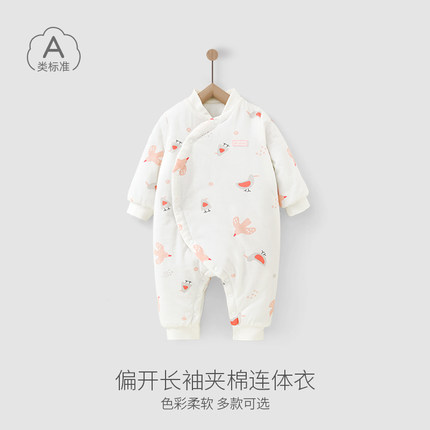 婴儿衣服秋冬新款新生儿宝宝冬天a类纯棉连体衣初生夹棉哈衣冬季