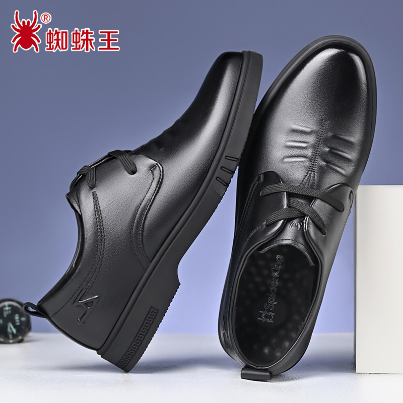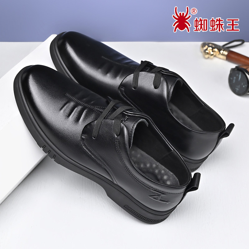 蜘蛛王男鞋2026春秋季新款真皮商务休闲鞋系带软底软皮英伦皮鞋男