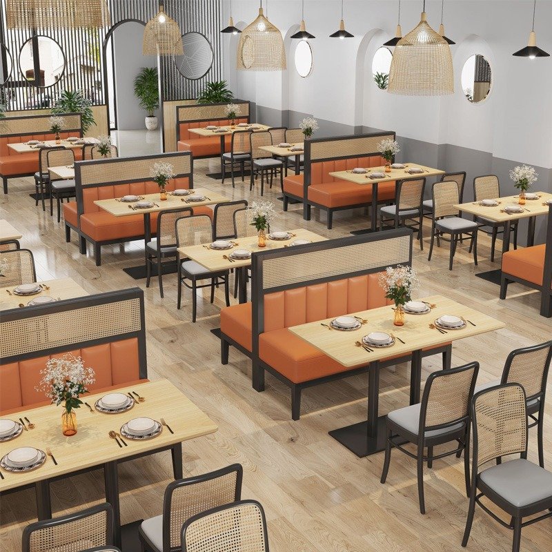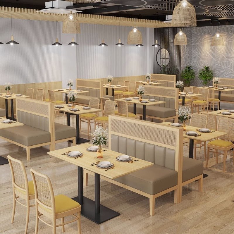 主题餐厅卡座沙发靠墙餐饮商用料理店火锅奶茶咖啡厅桌椅组合藤椅