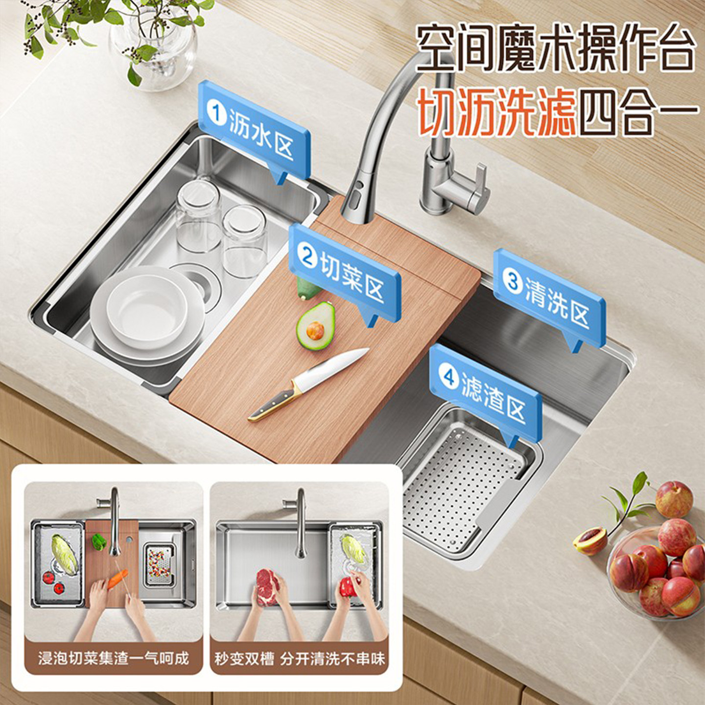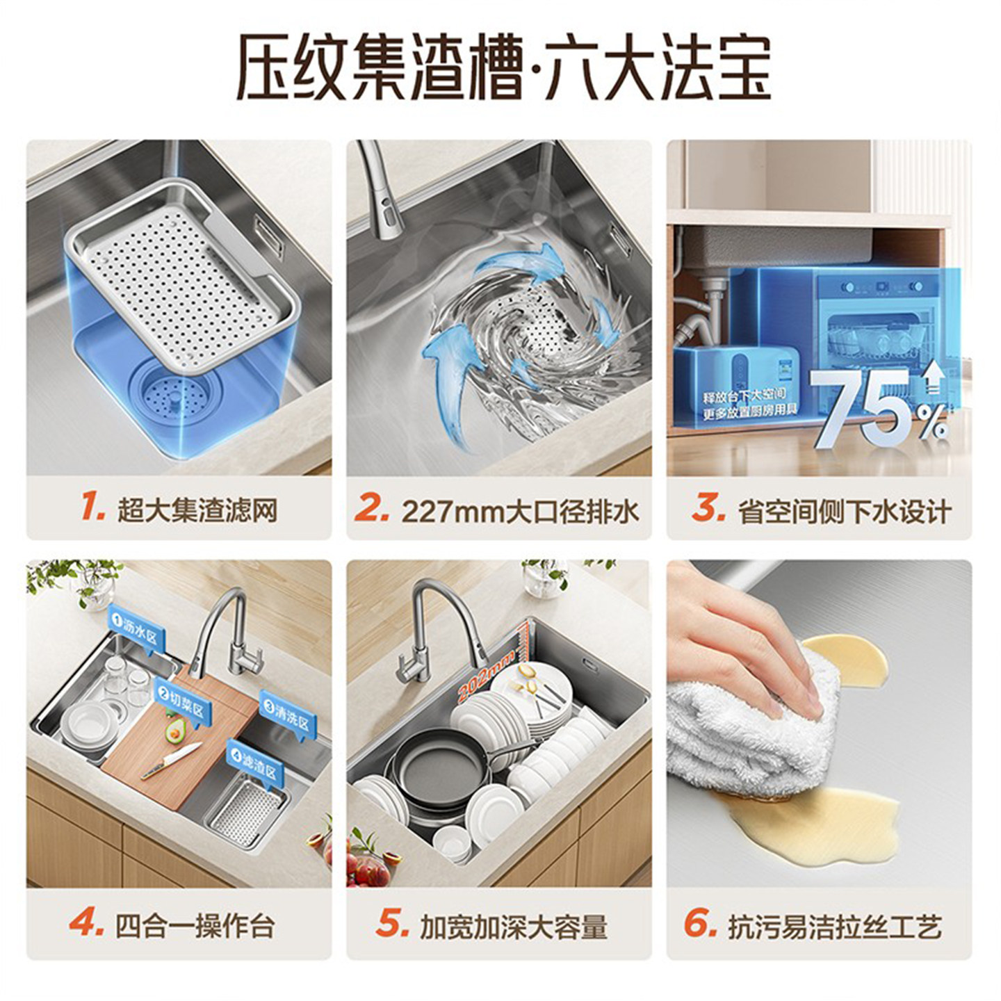 箭牌银色聚渣宝 水槽大单槽304不锈钢厨房洗菜盆洗碗槽单盆台下盆